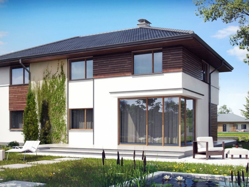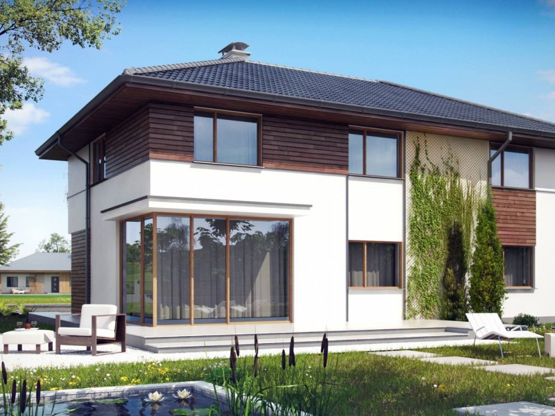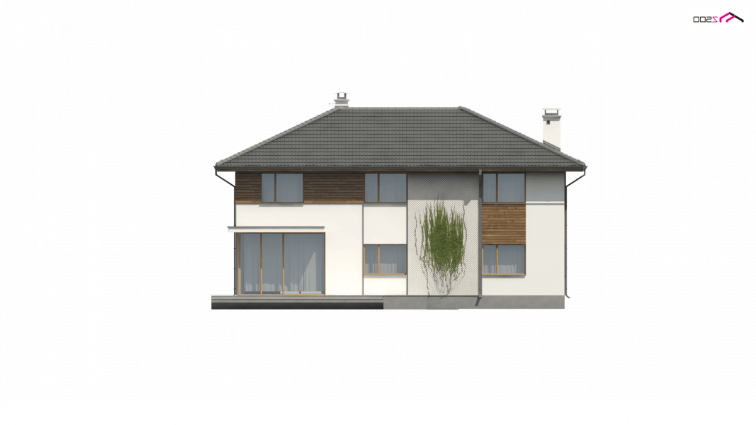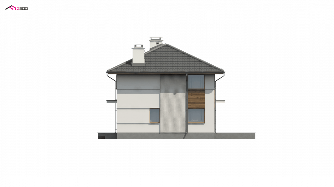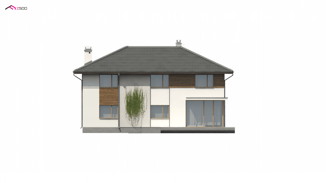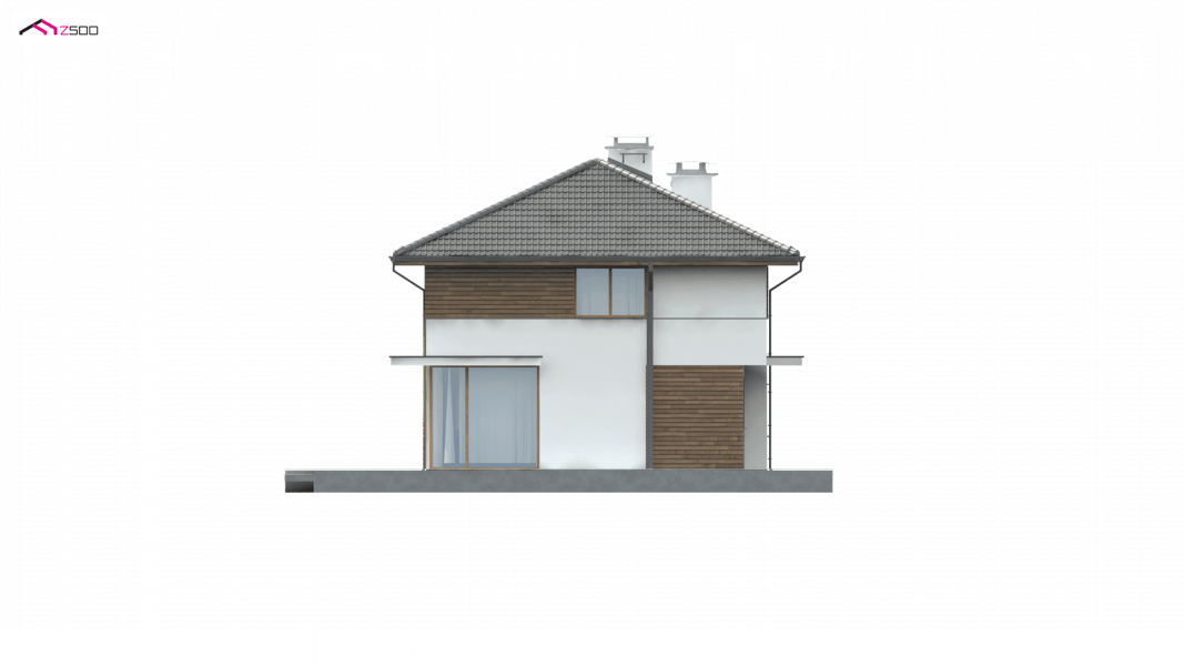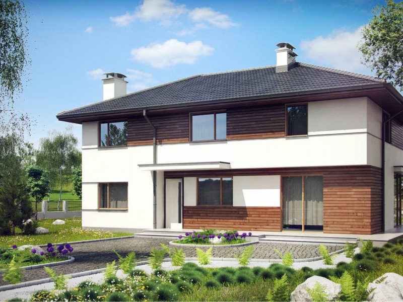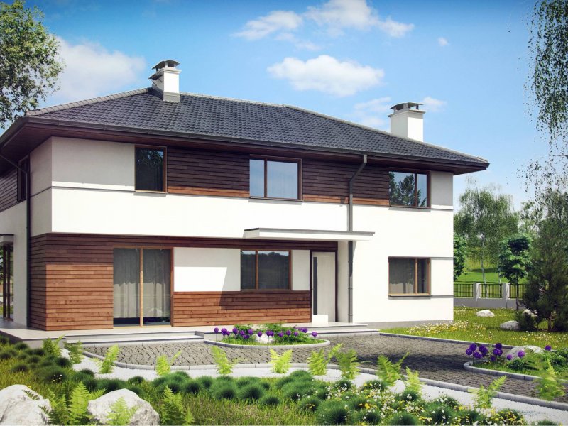 Z159 to funkcjonalny i atrakcyjny projekt domu. Jasna elewacja oraz drewniane elementy nadają mu estetycznego i świeżego wyglądu.