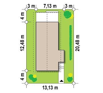 - Min. wymiary działki 21.54x13.13 m