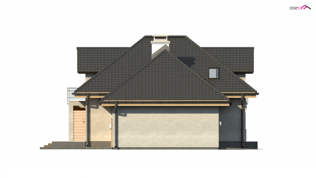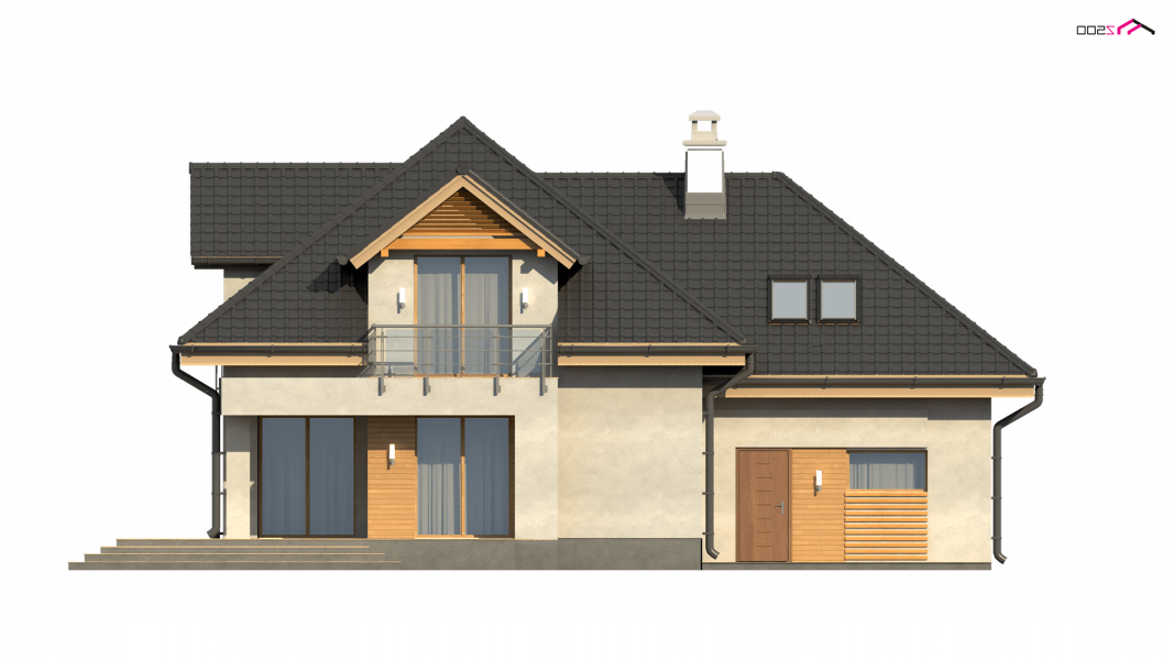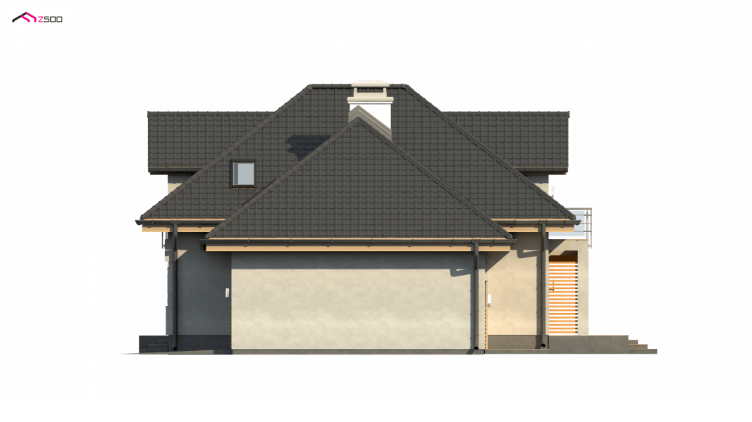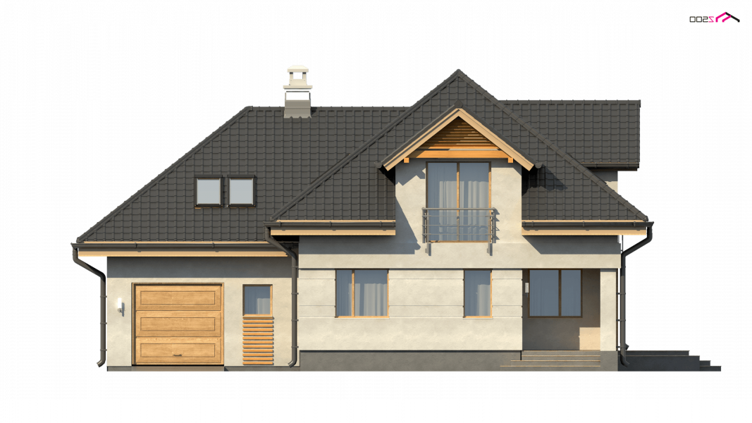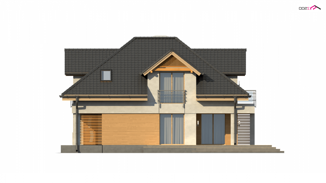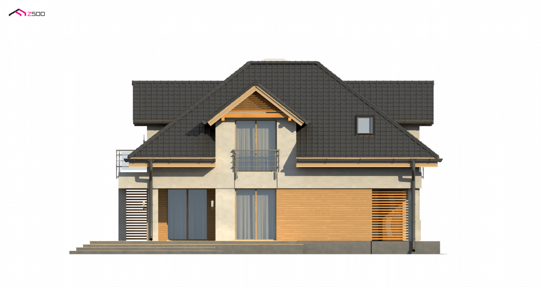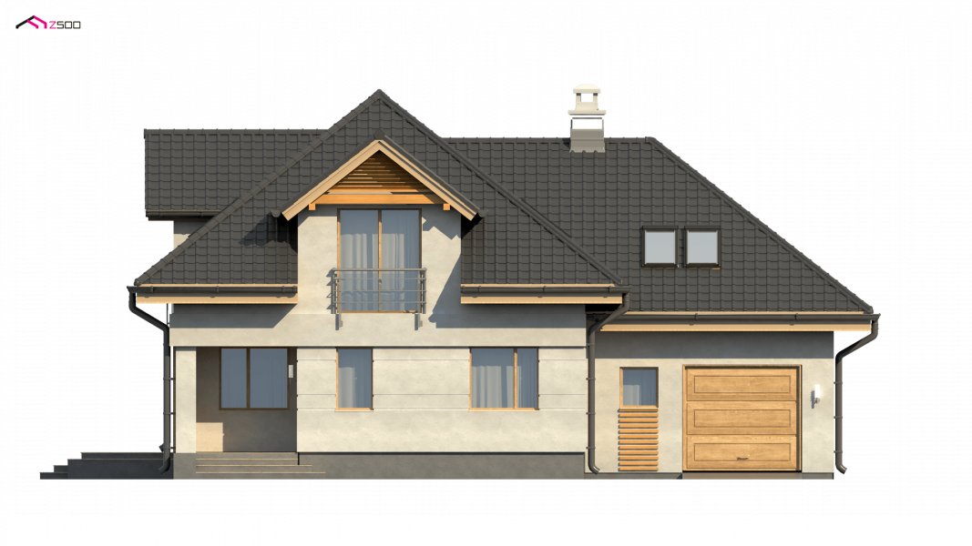 Z284 to zgrabny dom z poddaszem użytkowym i garażem jednostanowiskowym. Urozmaicona bryła, lukarny, podcięcia oraz nowoczesny charakter wykończenia elewacji decydują o jego atrakcyjności.