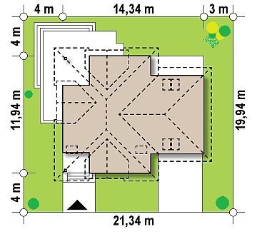 - Min. wymiary działki 19.94x21.34 m
