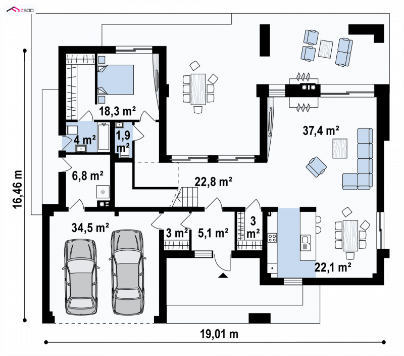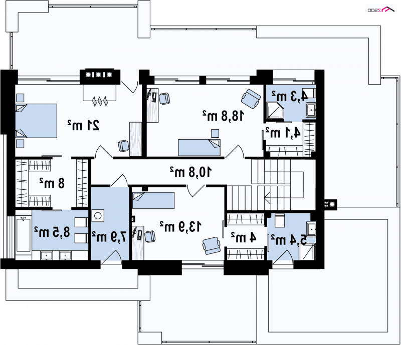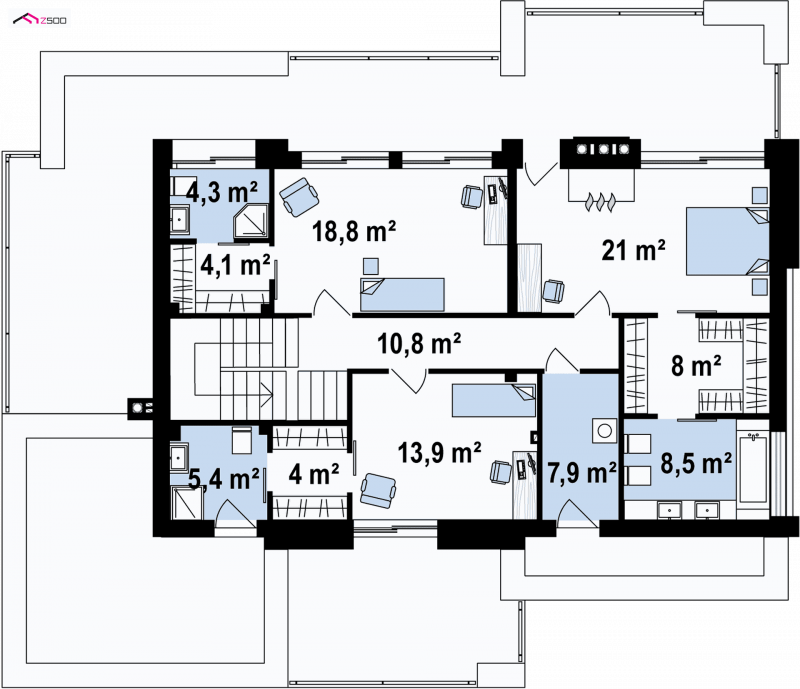 Zx107 jest propozycją projektu o powierzchni użytkowej 220 m2.