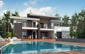 Piętro składa się z 3 sypialni. Każda z nich posiada swoją prywatną garderobę, łazienkę oraz wyjście na taras. Dodatkowy atut stanowi kominek w sypialni głównej. Pamiętano również o pralni i możliwości wieszania prania oraz wietrzenia pościeli. Mamy do dyspozycji 2 tarasy na piętrze, które służą jako zadaszenie tarasów na parterze.