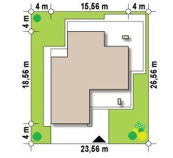 - Min. wymiary działki 26.56x23.56 m