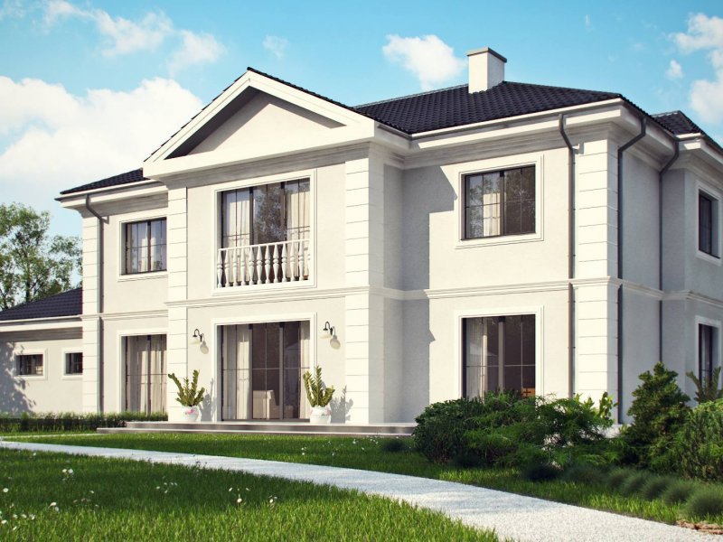 Zx113 to piękny, piętrowy dom w stylu dworkowym.