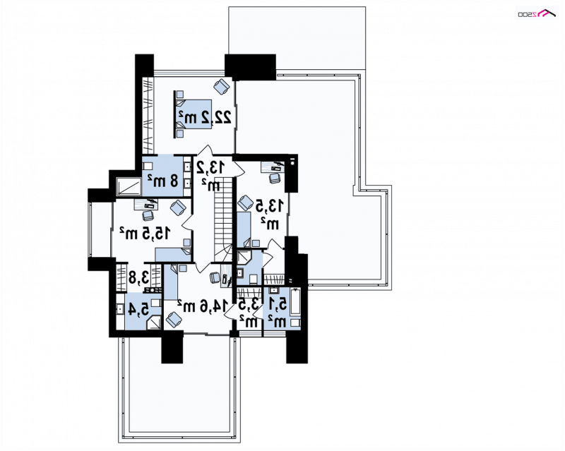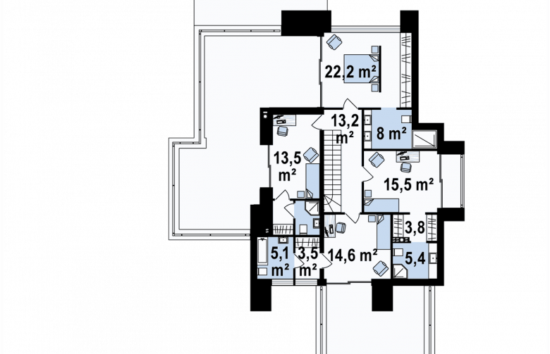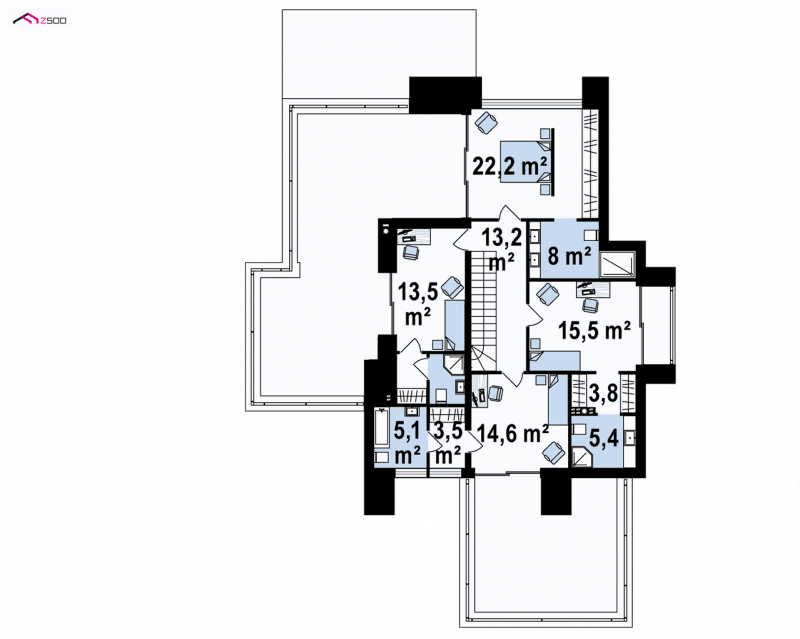 Składa się z 4 sypialni, każda z sypialni posiada prywatną łazienkę i garderobę, co cieszy większość kobiet. Również mężczyźni nie pozostają obojętni na walory posiadania kilku łazienek. Wszak rozwiążą się odwieczne konflikty między dwojgiem płci dotyczące dostępności łazienek.