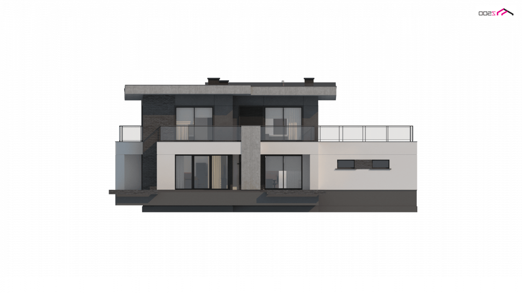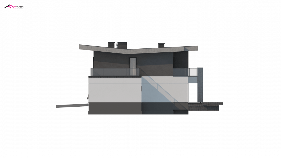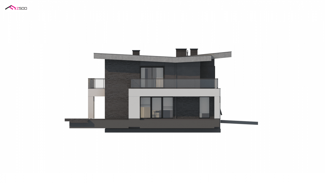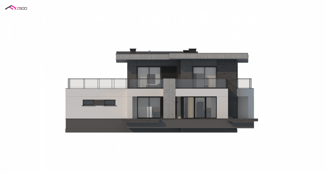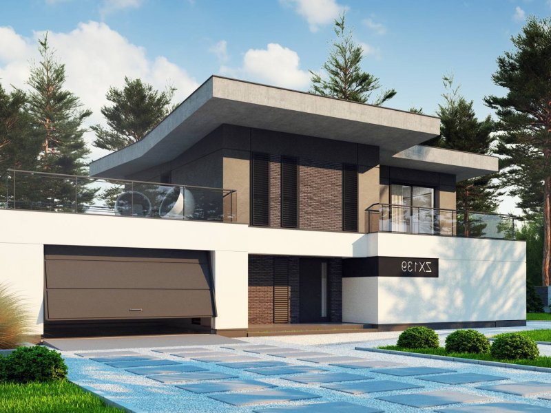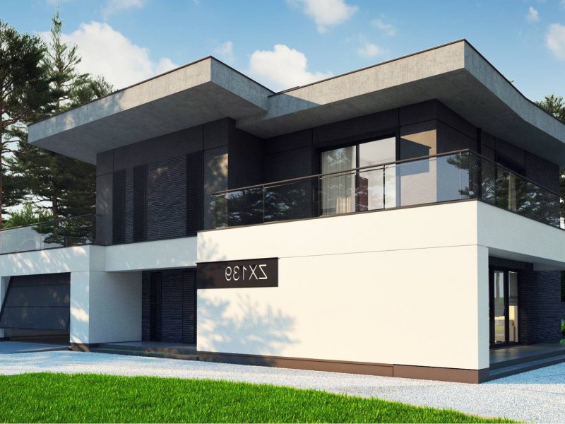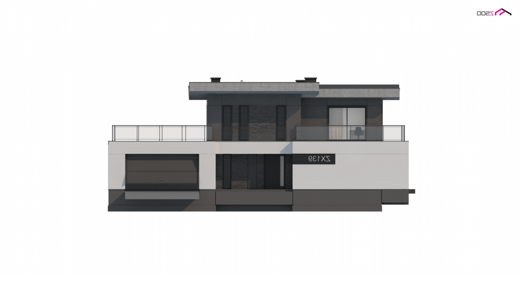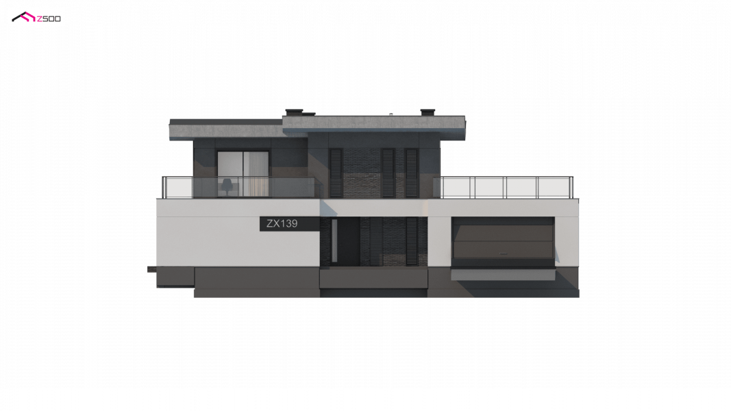 Zx139 to nowoczesny, piętrowy projekt Z500 z płaskim dachem oraz dwustanowiskowym garażem.