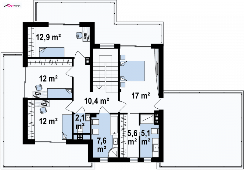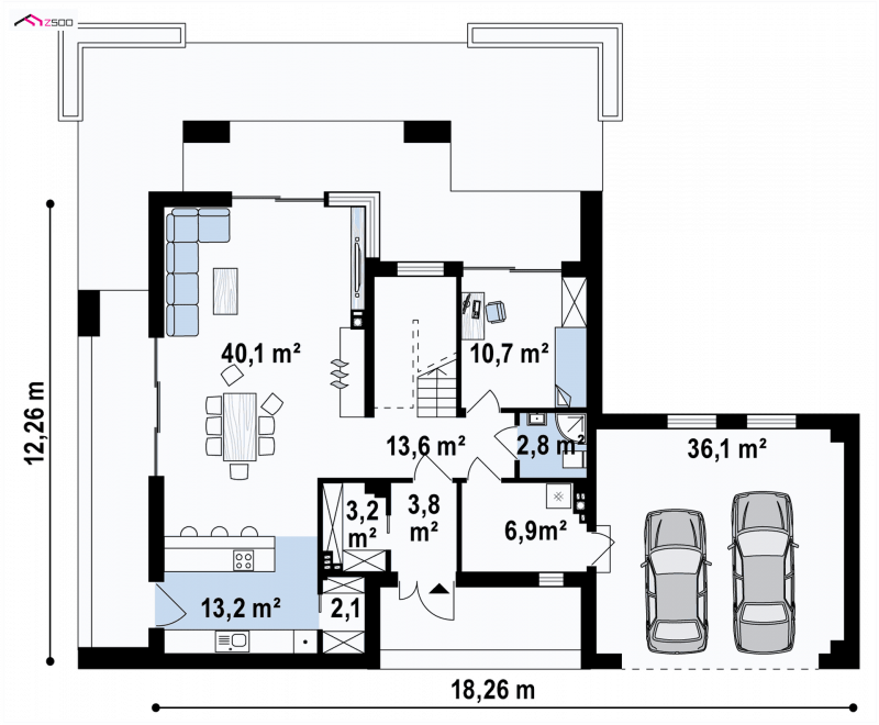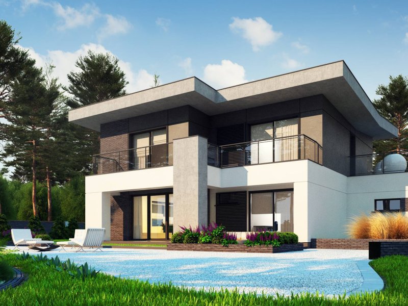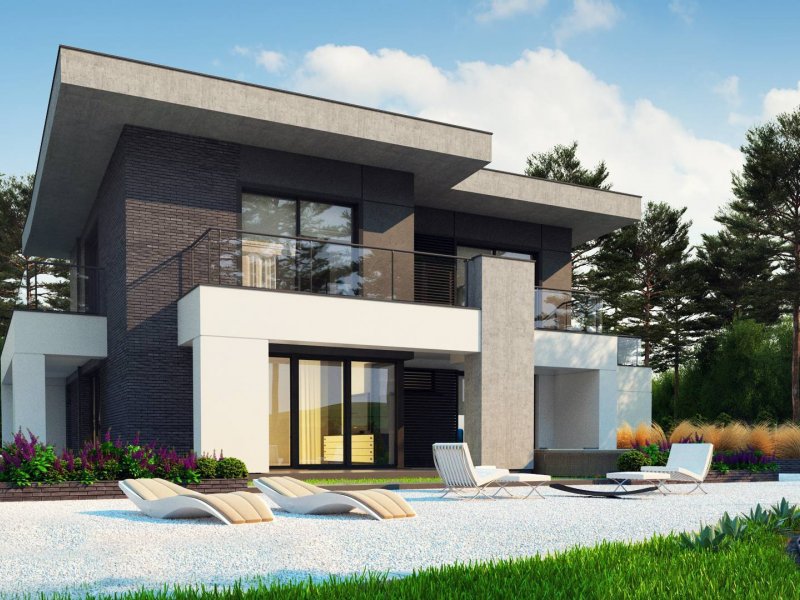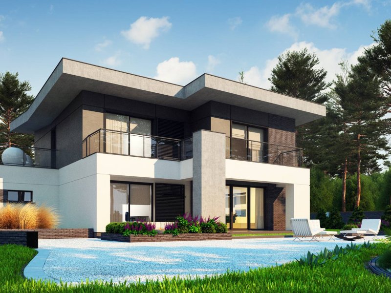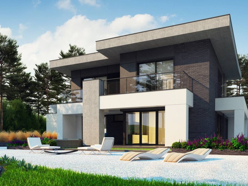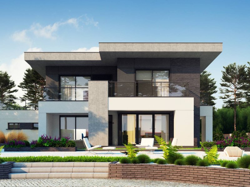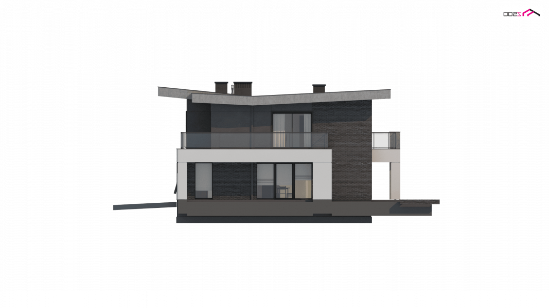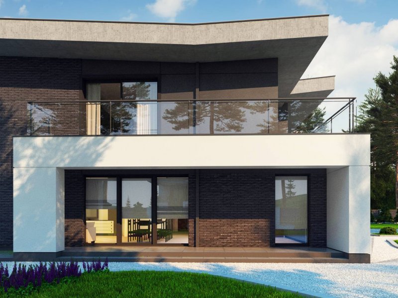 Zx139 to nowoczesny, piętrowy projekt Z500 z płaskim dachem oraz dwustanowiskowym garażem.
