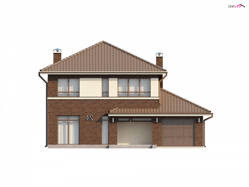 Zx24 to dom o zgrabnej, proporcjonalnej bryle wykończonej ceramiczną okładziną. Stylistyką nawiązuje do najlepszych wzorców architektury z za oceanu. Nowoczesna forma domu piętrowego sprawdzi się każdym krajobrazie. Od strony ogrodowej zlokalizowany jest przyjemny taras z podcieniem, pod którym można się skryć w słoneczne dni.