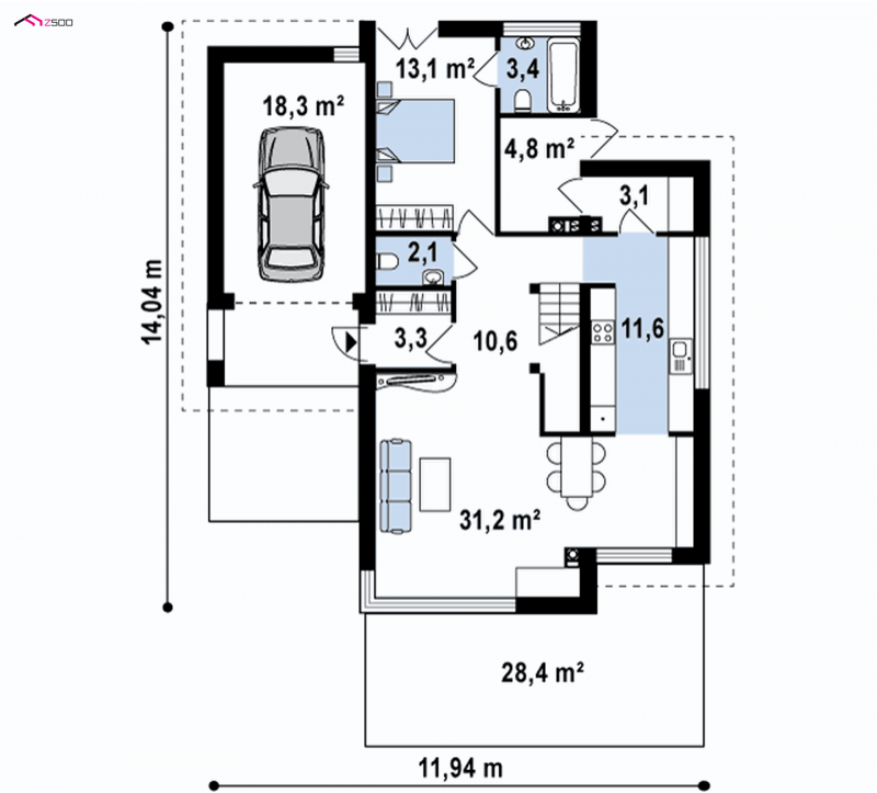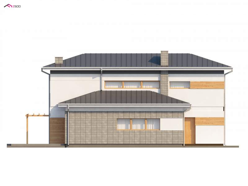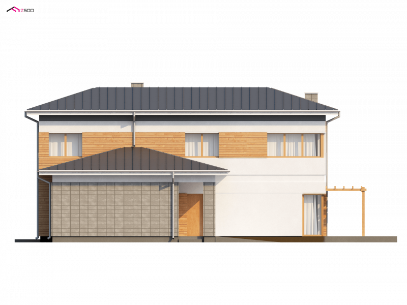 Zx25 to nowoczesny dom o ciekawej bryle i funkcjonalnym układzie pomieszczeń. Sprawdzi się także na działkach z wjazdem od południa.
