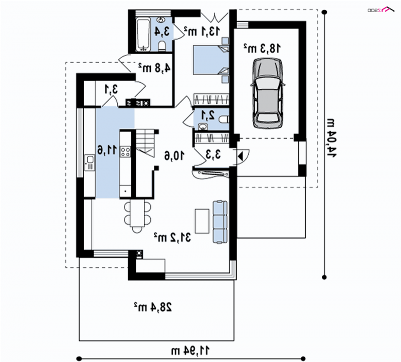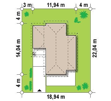 - Min. wymiary działki 22.04x18.94 m