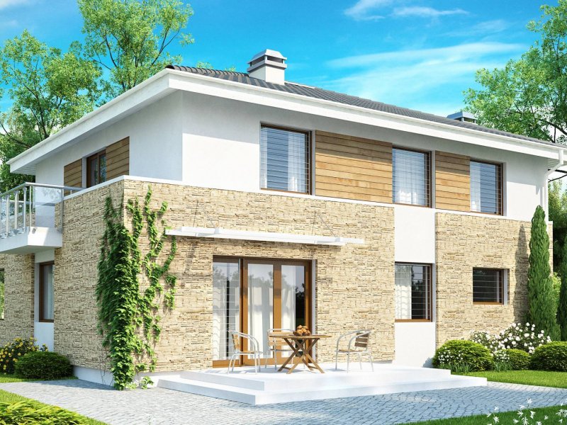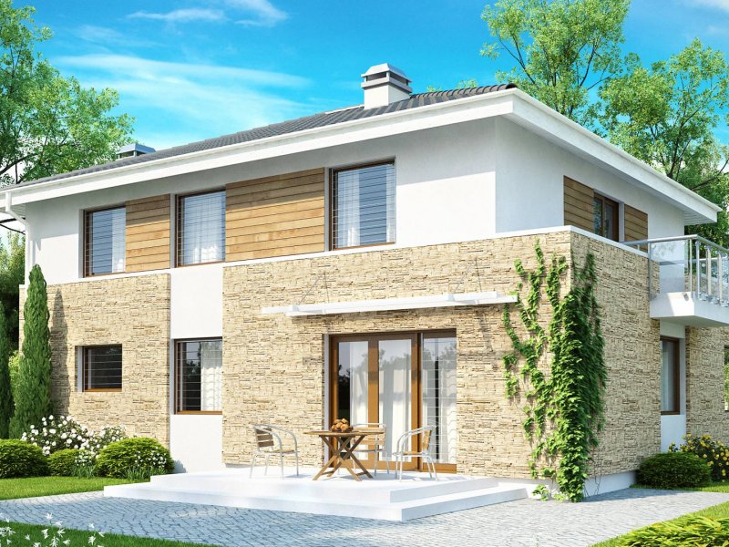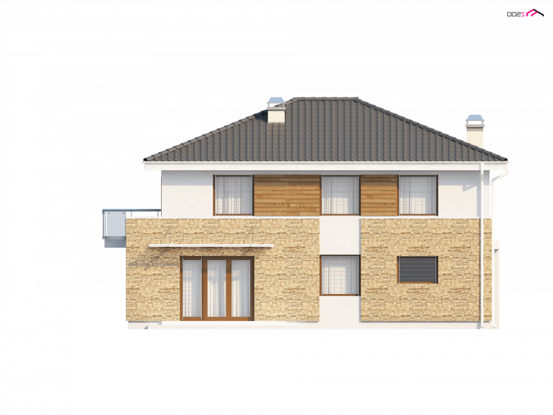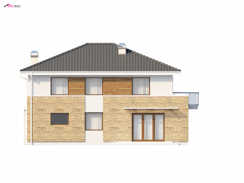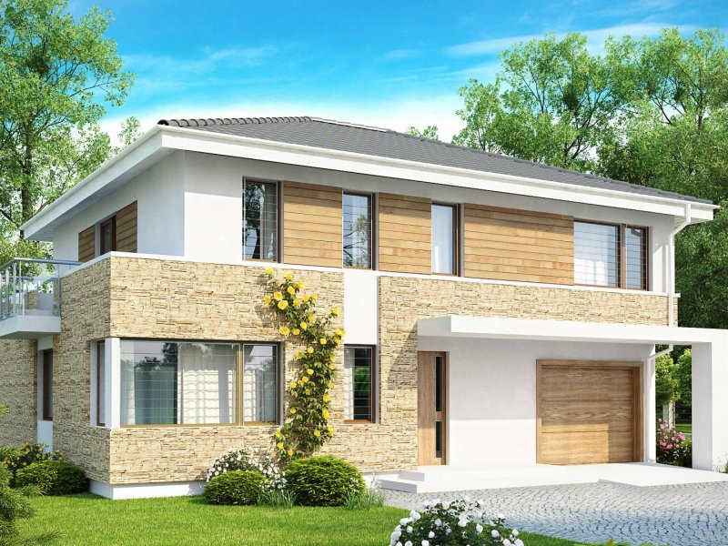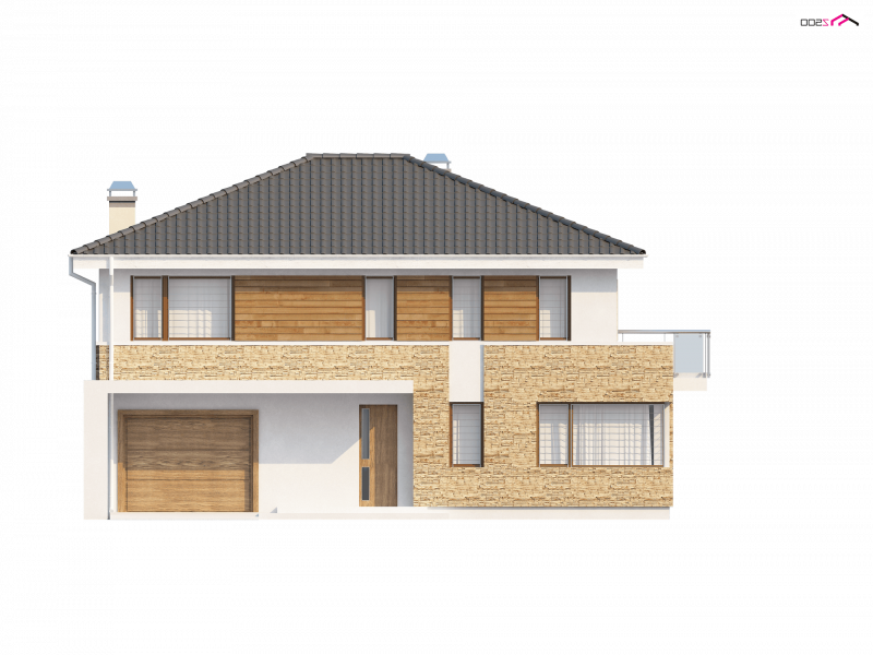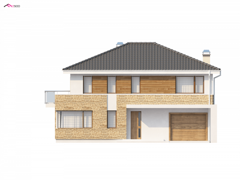 Zx29 to dom z nowoczesnej linii wygodnych domów piętrowych z garażem w bryle. Eleganckie, naturalne dodatki, jasna kolorystyka dodają mu klasy i wyjątkowego stylu jak przystało na dom willowy.