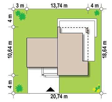 - Min. wymiary działki 17.64x20.74 m
