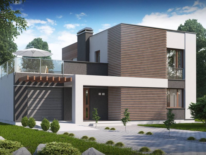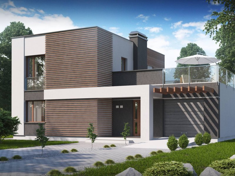 Zx41 to propozycja kompaktowego domu dla zwolenników nowoczesnego stylu. Połączenie bieli i drewna tworzą spójną całość o wysokiej estetyce.