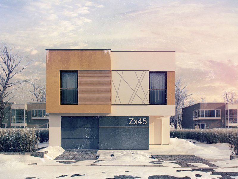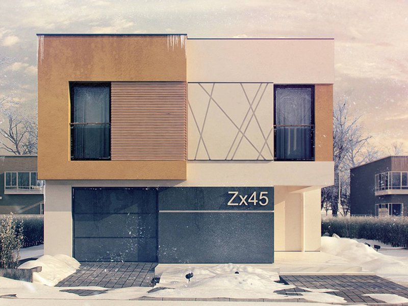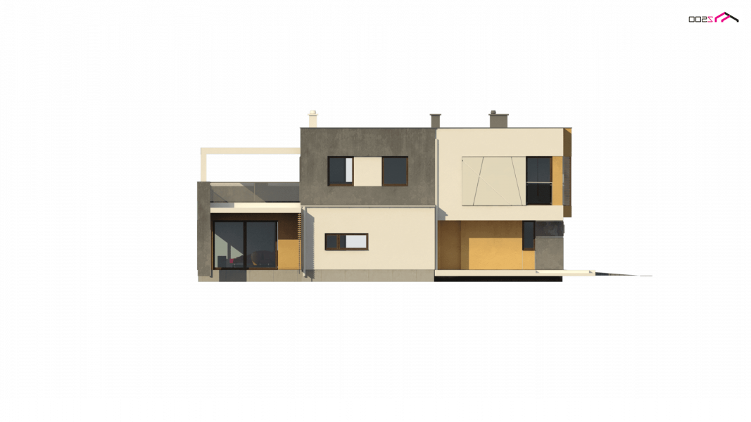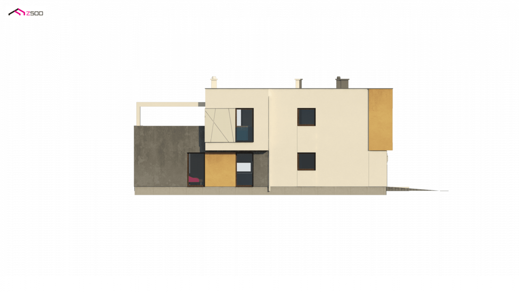 Zx45 to wyjątkowy piętrowy dom z garażem jednostanowiskowym w nowoczesnym stylu. Atrakcyjna bryła z płaskim dachem, funkcjonalne wnętrze oraz ciekawe elementy wykończenia elewacji nadają mu osobliwego uroku i wdzięku.