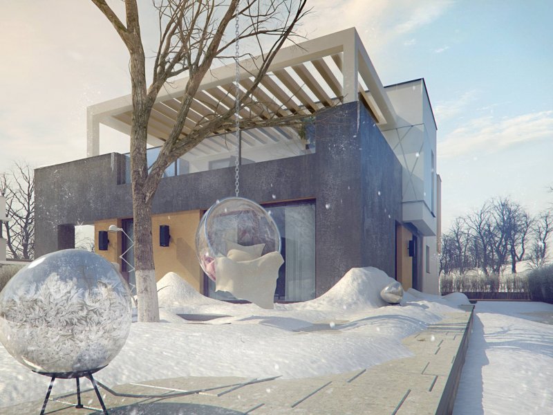 Parter to komfortowa strefa dzienna z przestronnym salonem i dużą kuchnią. Program wzbogaca dodatkowo gabinet z wyjściem na taras, podręczna spiżarka oraz łazienka z prysznicem. W sieni znajduje się dużo miejsca na pojemną szafę. Piętro to prywatna strefa domowników. Tworzą ją trzy komfortowe sypialnie, każda z dużymi przeszkleniami. Master bedroom wyposażono we własną łazienkę oraz garderobę. Dodatkowo na tej kondygnacji znajduje się także duża, ogólnodostępna łazienka z oknem, pralnia oraz garderoba.