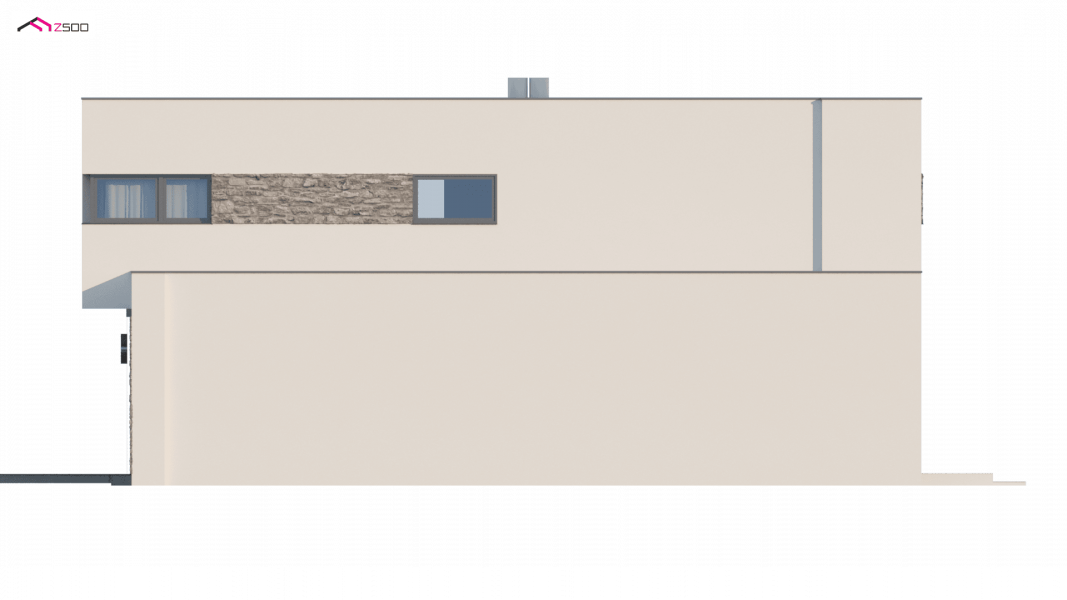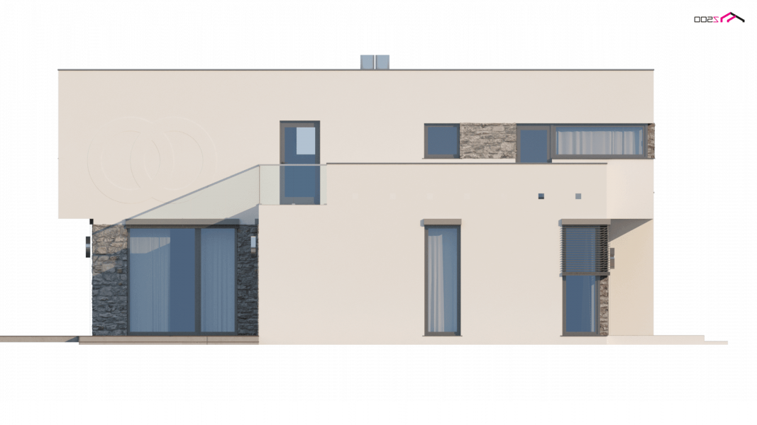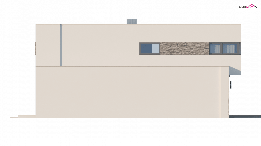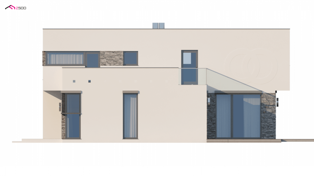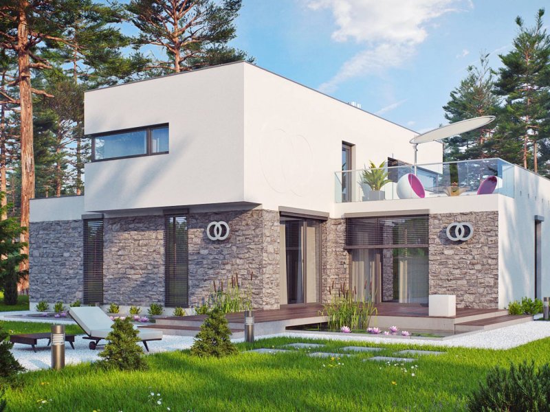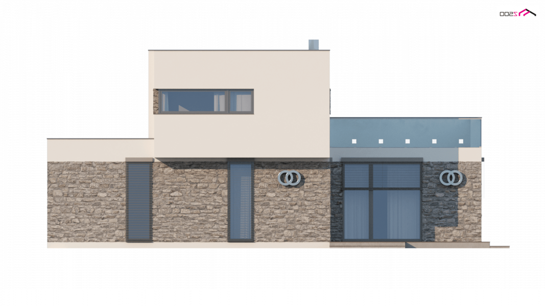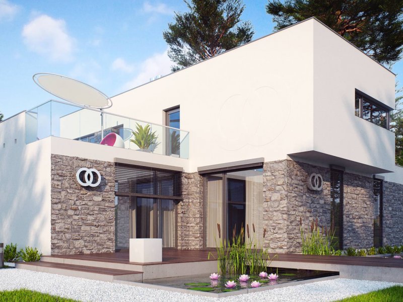 Projekt nowoczesnego domu Zx46 wyróżnia się ciekawą, kubiczną bryłą oraz detalami z jasnego kamienia.