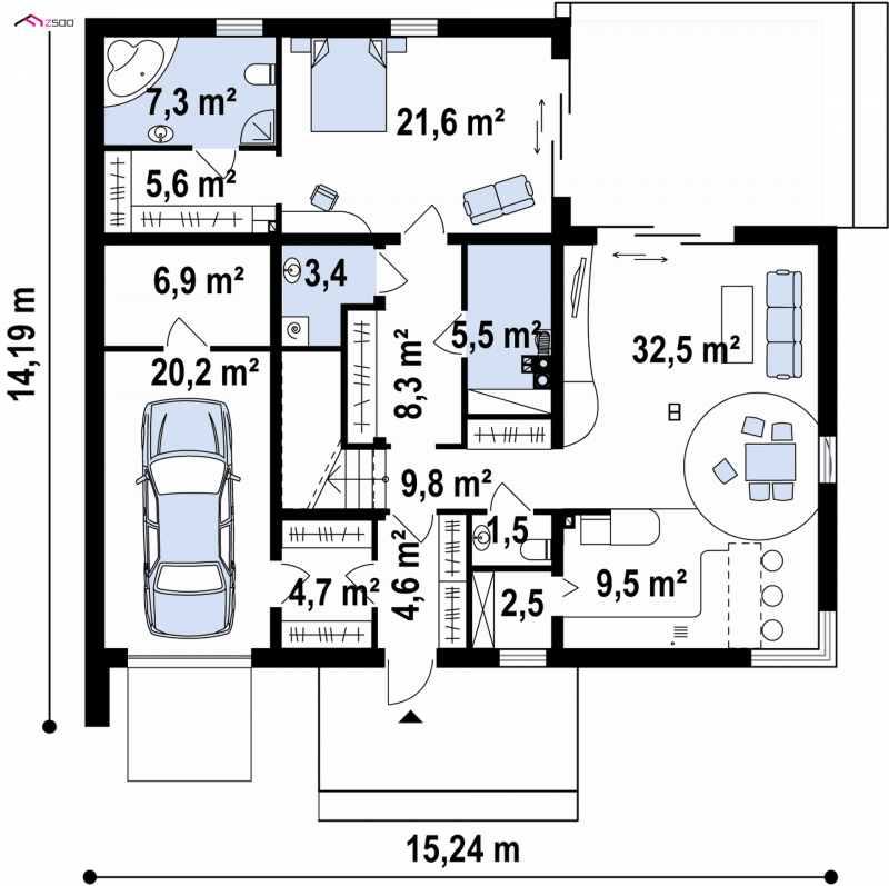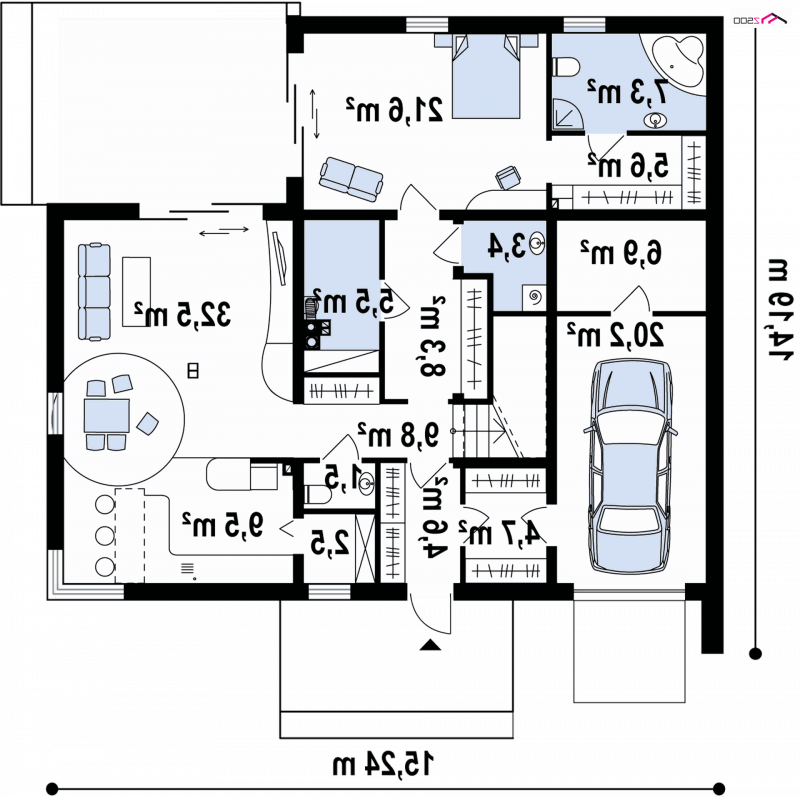 Pomimo ekstrawaganckiego i modernistycznego wyglądu projekt jest prosty w budowie. Doskonale trafi w gusta ludzi szukających oryginalnego i wyjątkowego domu, które pomieścić całkiem sporą rodzinę.