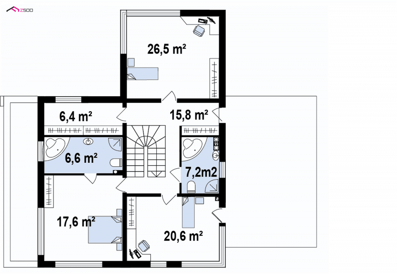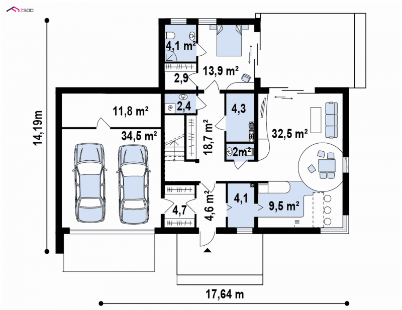 Choć wyglądem ekstrawagancki i modernistyczny, jest to prosty w budowie projekt. Doskonale trafiający w gusta ludzi szukających oryginalnego i wyjątkowego domu, mogącego pomieścić całkiem sporą rodzinę