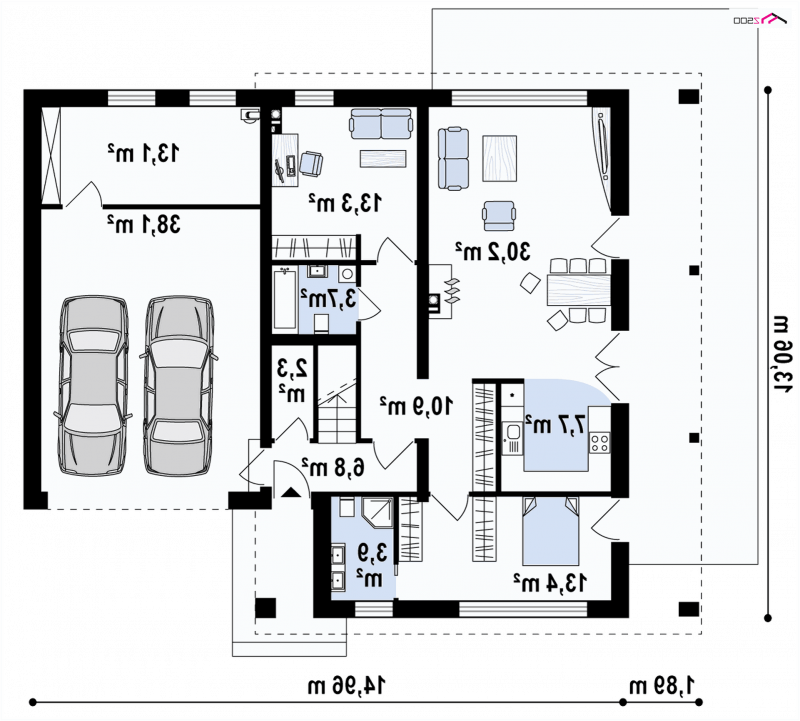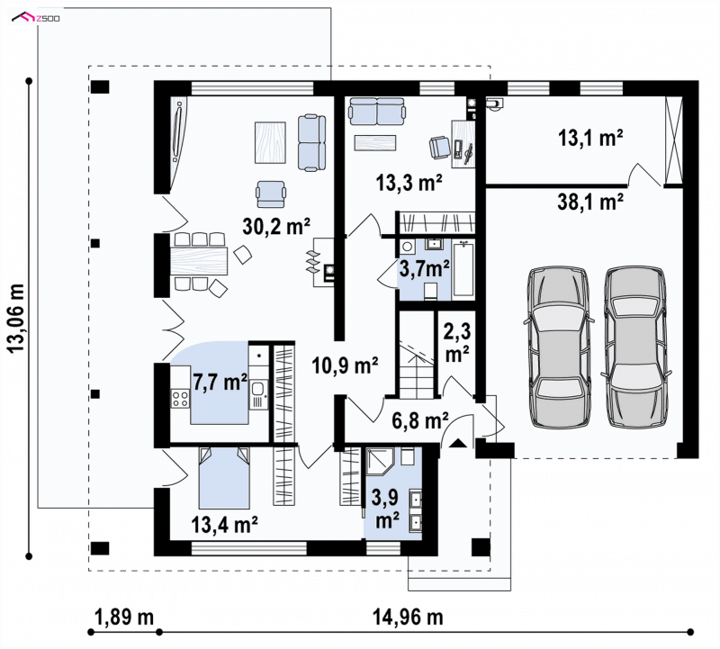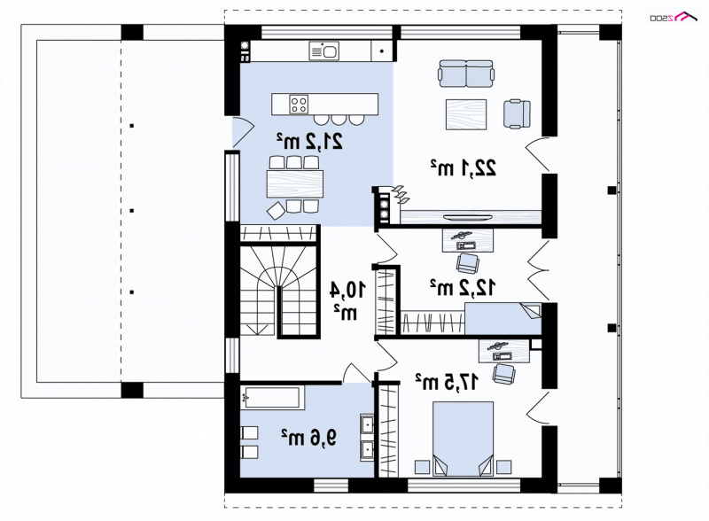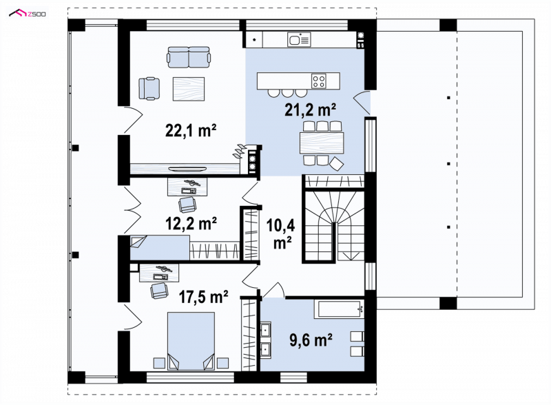 Zx5 2M to nowoczesny dom wolnostojący z dwoma odrębnymi mieszkaniami.