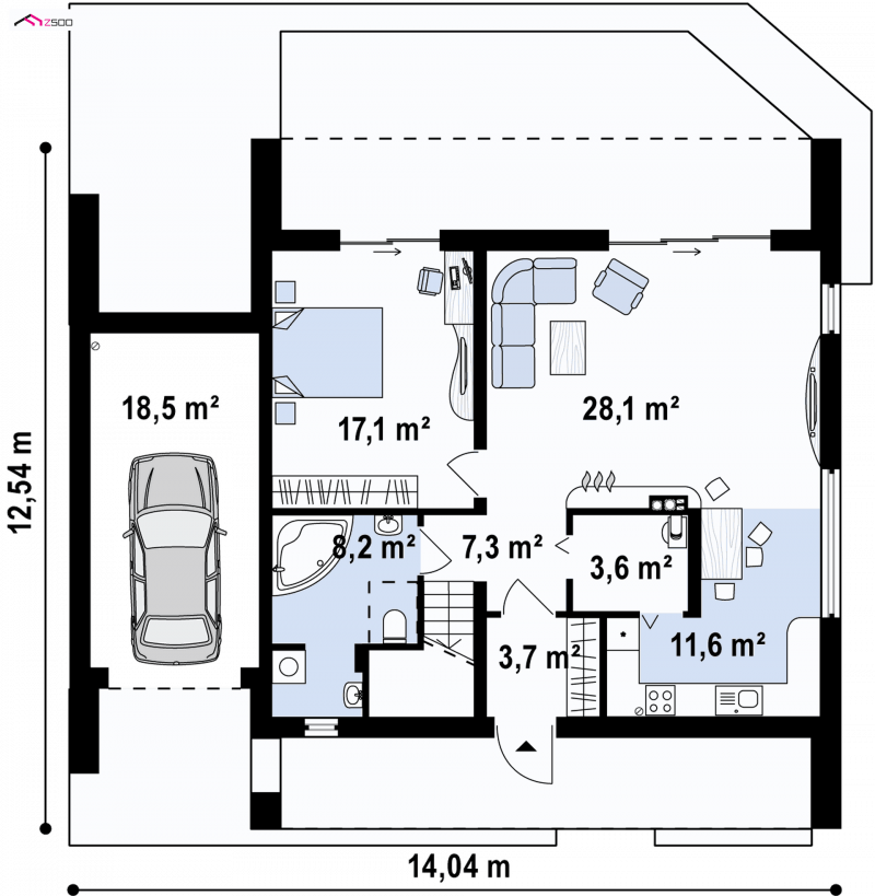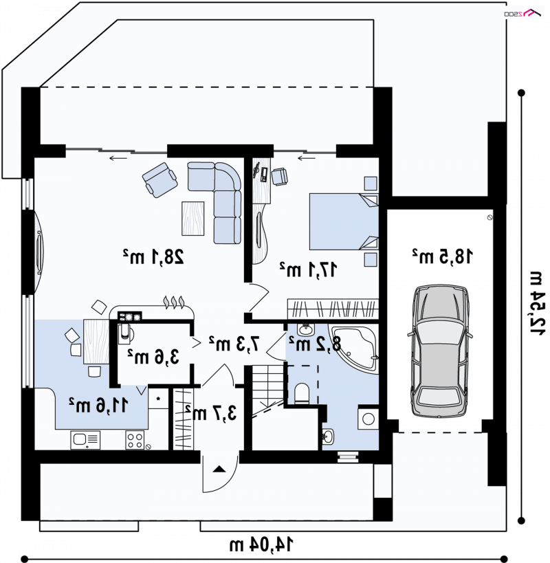 - Min. wymiary działki 17.24x21.04 m