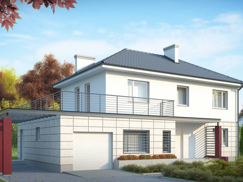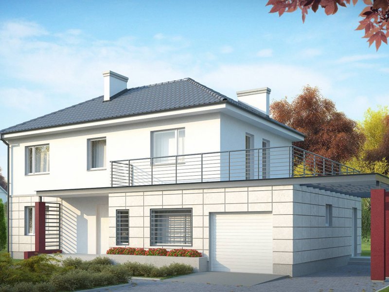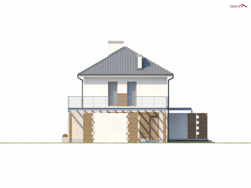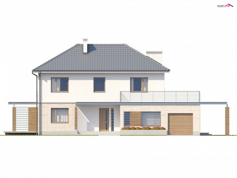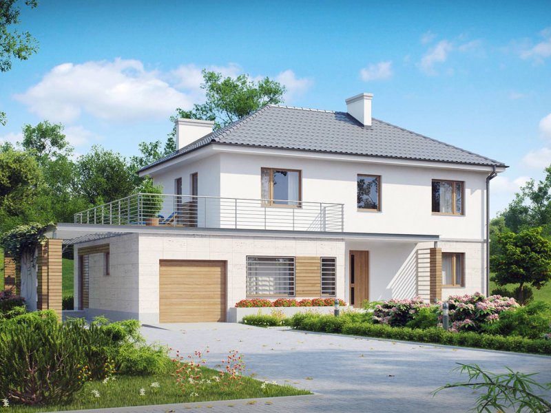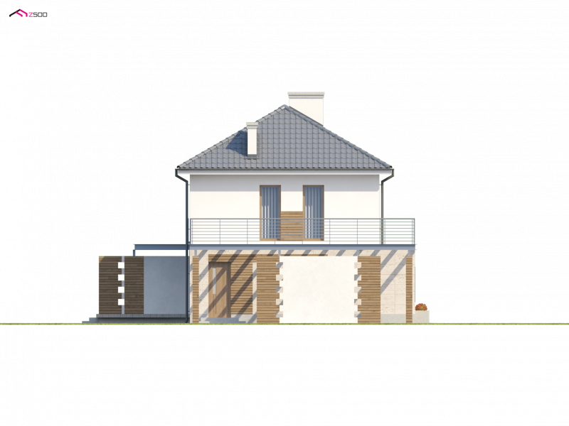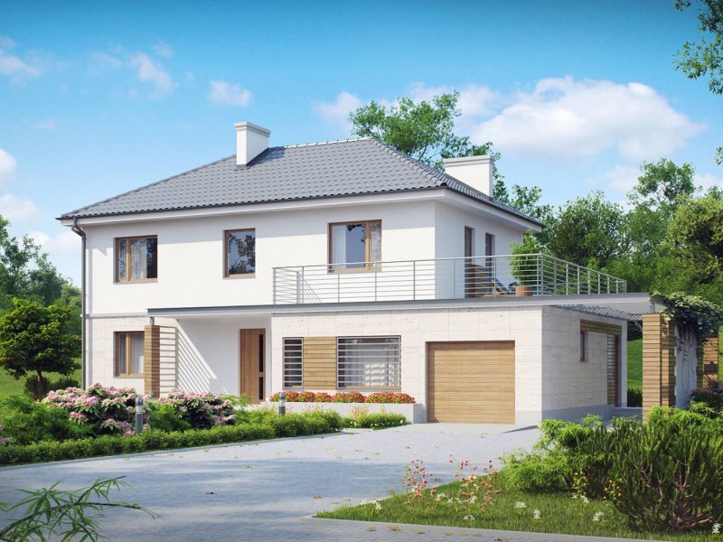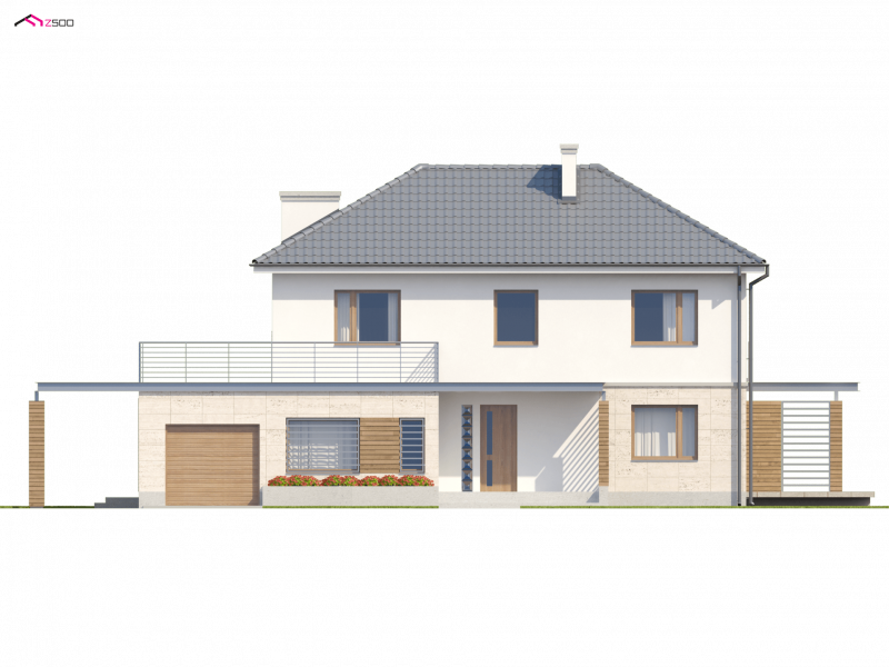 Zx6 to nowoczesny projekt z wysuniętą bryłą garażu przed front budynku. Prosta forma oraz umiejętnie dobrany detal nadają mu styl i współczesny charakter.