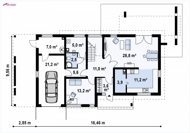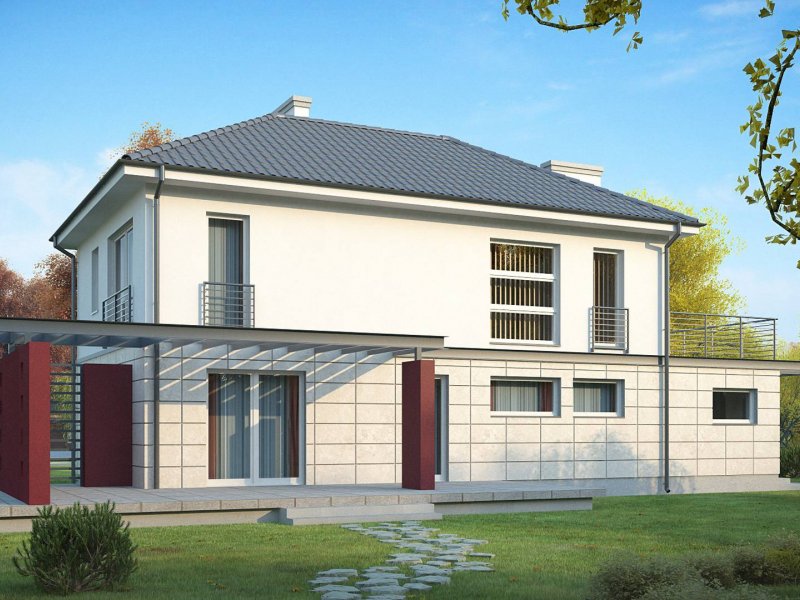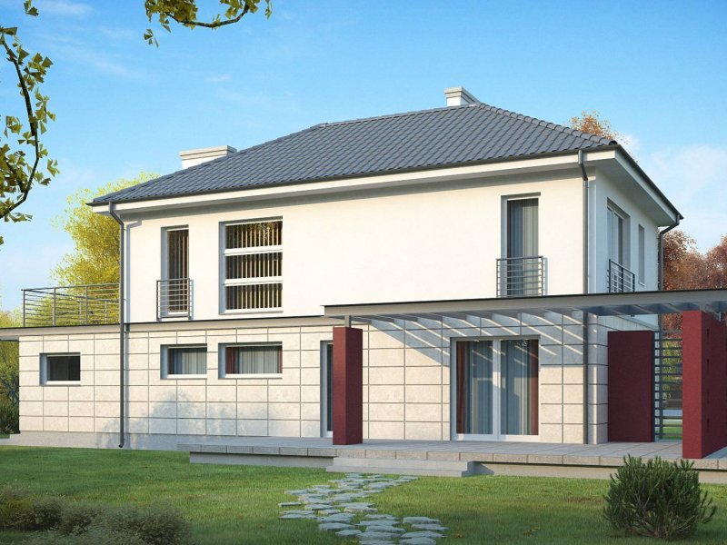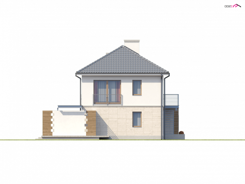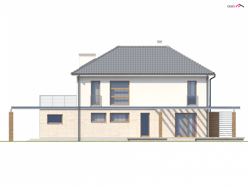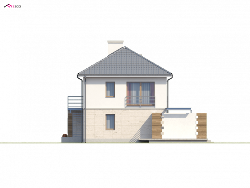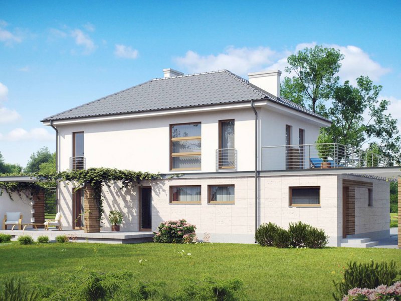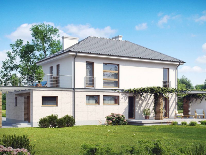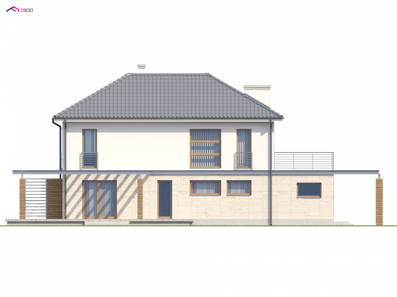 Zx6 to nowoczesny projekt z wysuniętą bryłą garażu przed front budynku. Prosta forma oraz umiejętnie dobrany detal nadają mu styl i współczesny charakter.