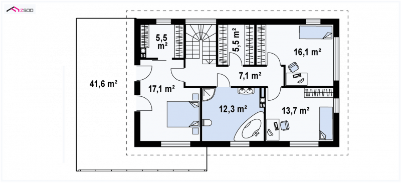 Zx6 idealnie nadaje się do zbliźniaczenia, można wykorzystać ten projekt także do budowy całego osiedla nowoczesnych bliźniaków.