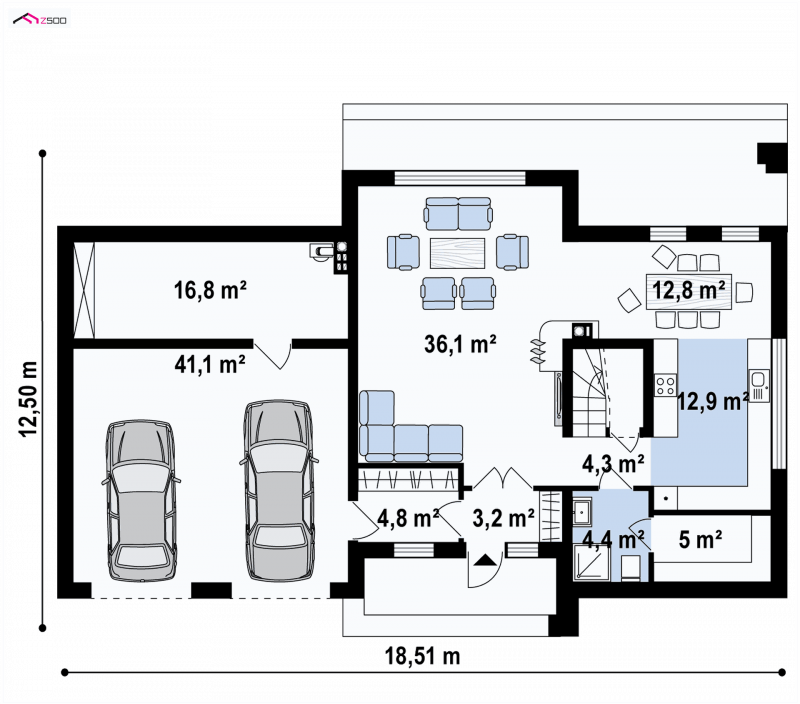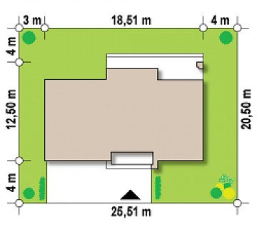 - Min. wymiary działki 18.82x25.51 m