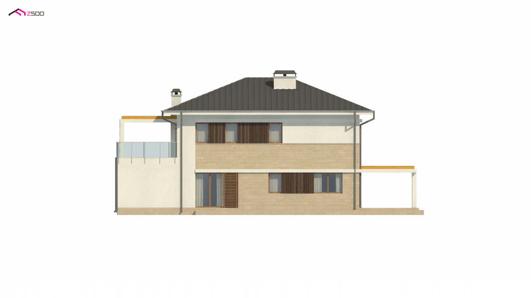 Projekt Zx63 B+ to prosty, funkcjonalny dom o wielomateriałowej elewacji, z czterospadowym dachem. Różni się od Zx63 tym, iż ma powiększoną powierzchnię domu, sporym pomieszczeniem gospodarczym, w którym możemy ustanowić dowolny sposób ogrzewania.