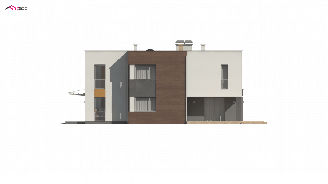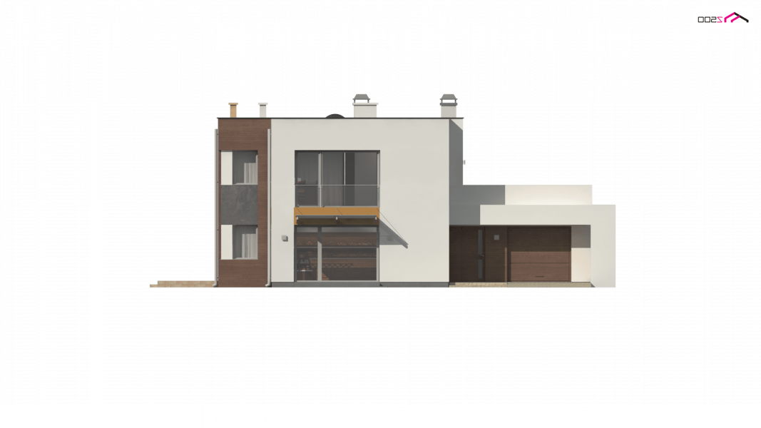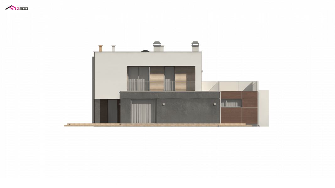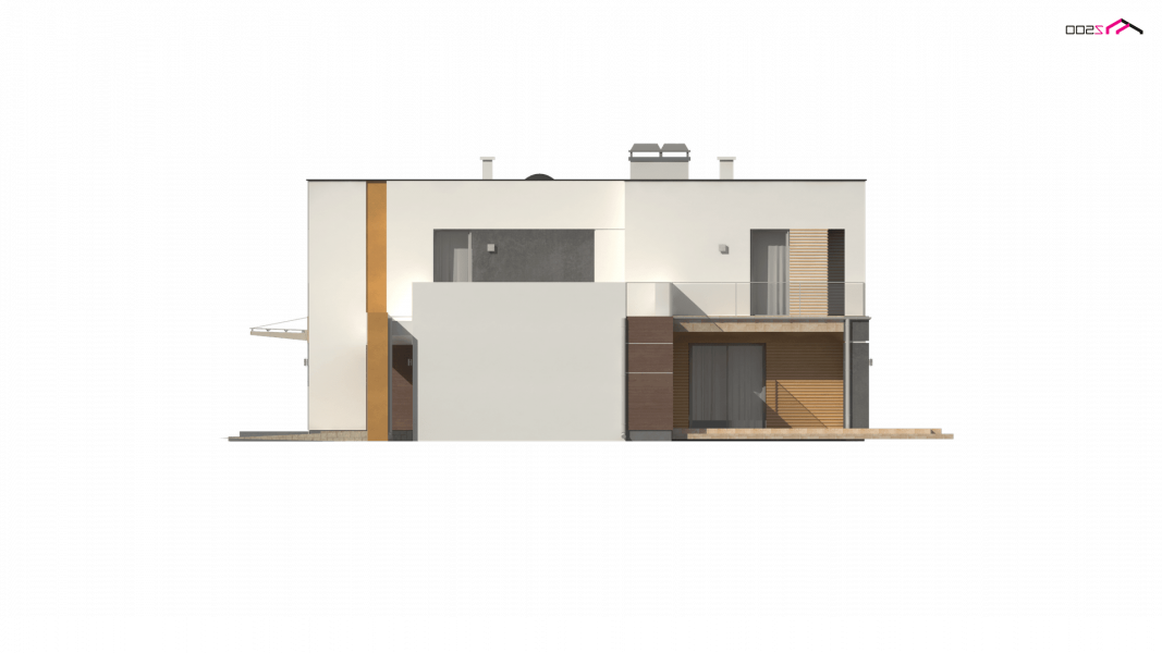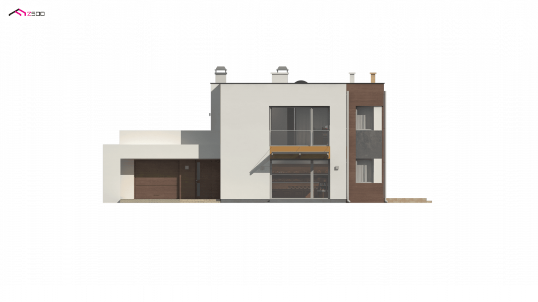 Zx64 to komfortowy dom jednorodzinny z garażem jednostanowiskowym. Płaski dach, ciekawa modernistyczna forma oraz duże przeszklenia i tarasy nadają mu wyjątkowego stylu.