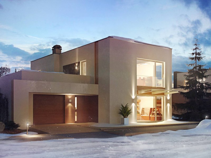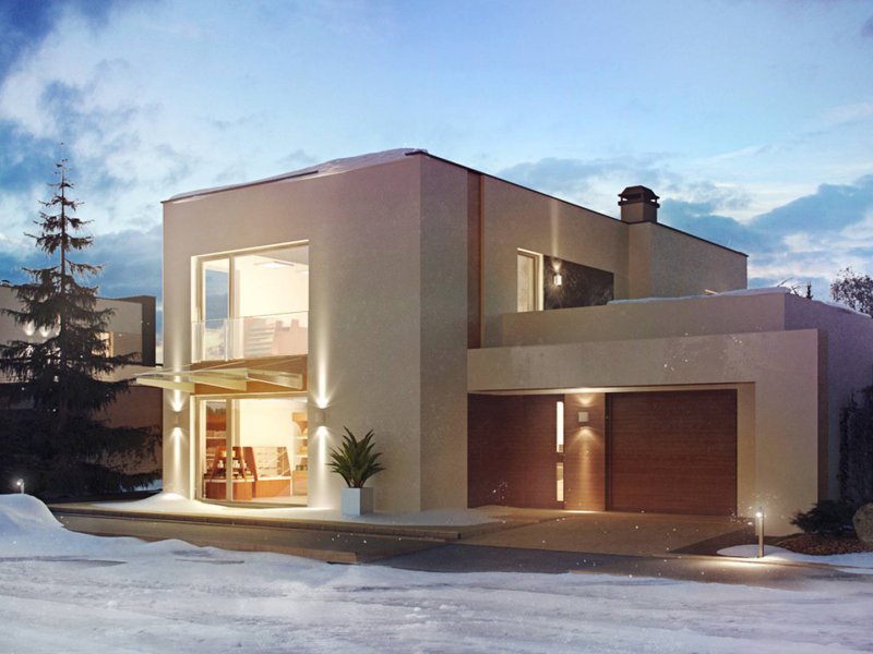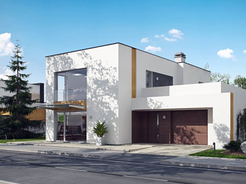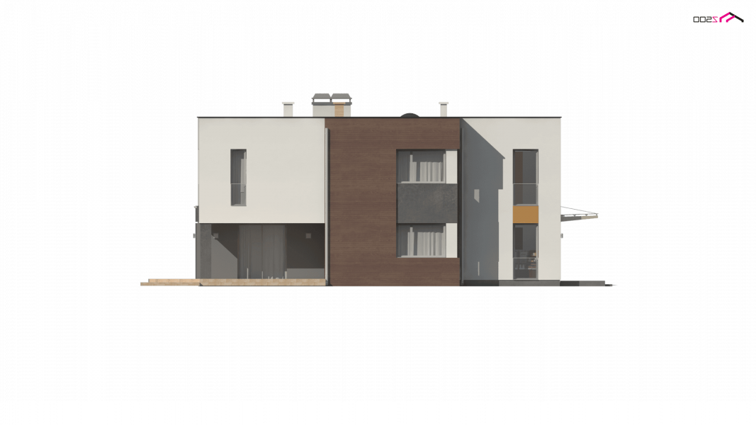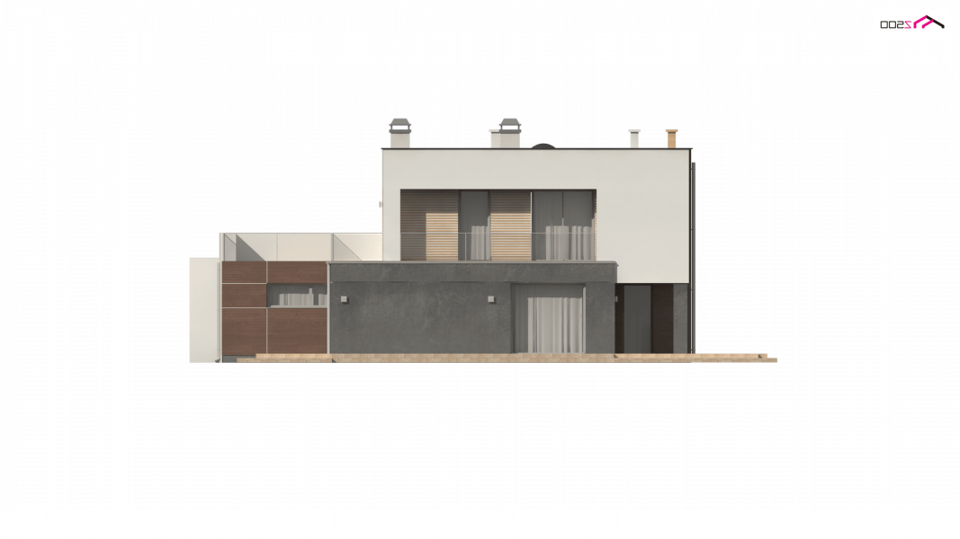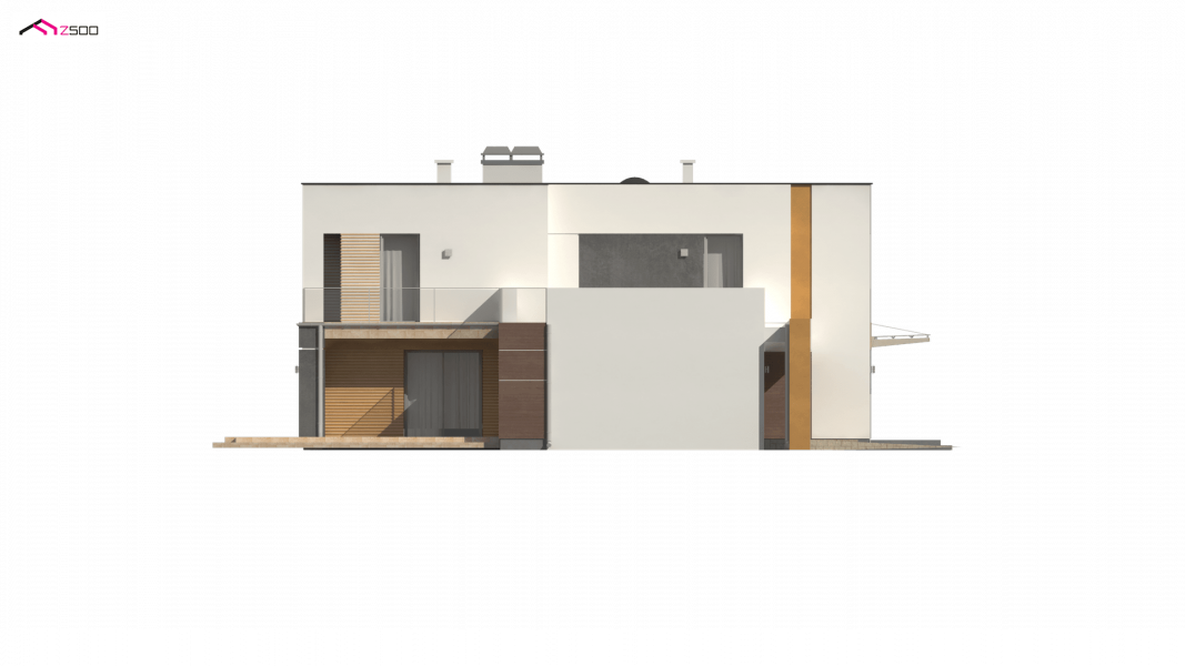 Zx64 to komfortowy dom jednorodzinny z garażem jednostanowiskowym. Płaski dach, ciekawa modernistyczna forma oraz duże przeszklenia i tarasy nadają mu wyjątkowego stylu.