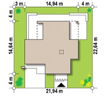 - Min. wymiary działki 22.64x22.94 m