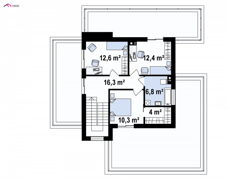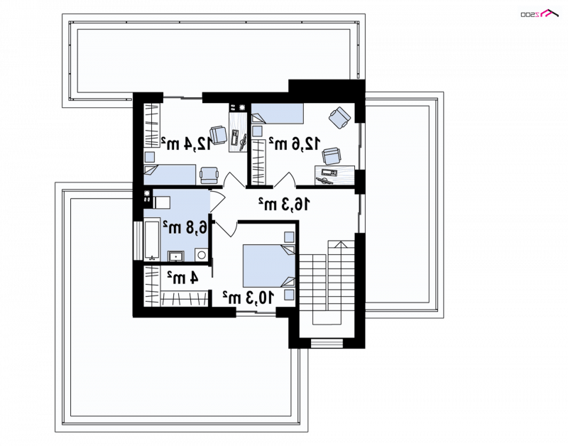 Piętro to nocna strefa domu. 3 sypialnie, z których każda posiada wyjście na oddzielny taras, zostały wykwintnie urządzone gustowną ręką Pani domu. Jeden z pokoi posiada prywatna garderobę, więc śmiało może być przeznaczony na sypialnię dla rodziców. Tutaj nikt z zaproszonych na obiad gości nie będzie zaglądał. Prywatność, prywatność i jeszcze raz prywatność.