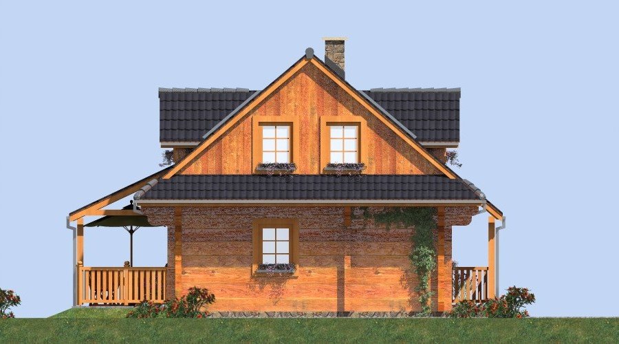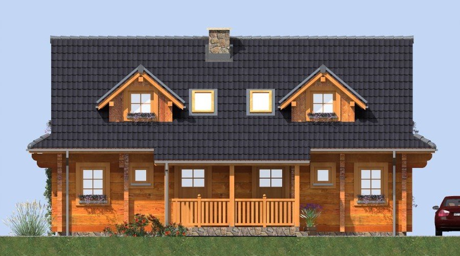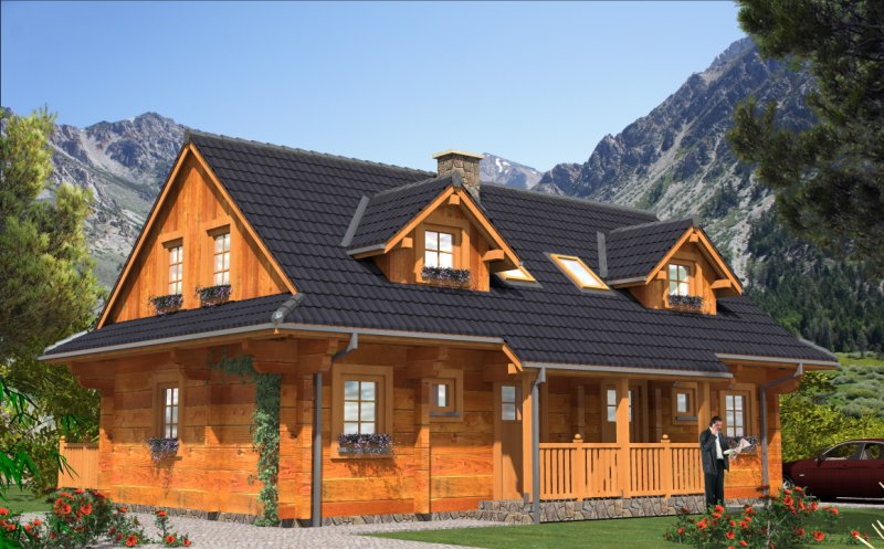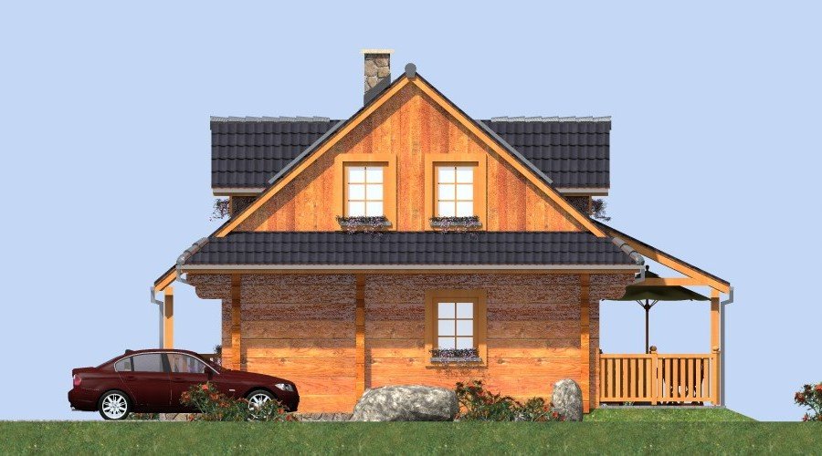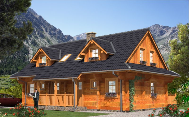 Ściany zewnętrzne: z bali drewnianych gr. 12, 16, 20, 24, 30 cm. ocieplone od wewnątrz wełną mineralną, gr. 52 cm bez ocieplenia