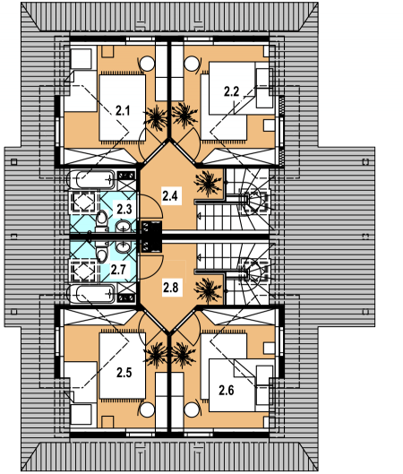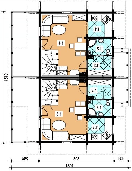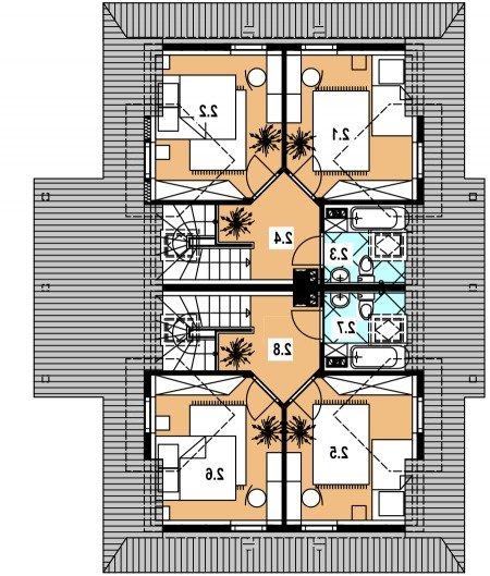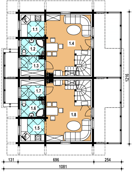 Budynek bliźniak, parterowy z poddaszem użytkowym, niepodpiwniczony,w każdym segmencie 3 pokoje, kuchnia