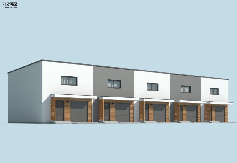 Ten projekt domu idealnie sprawdzi się również jako wolno stojący na bardzo wąskiej działce Wymaga to jedynie symetrycznego docieplenia. Będzie też znakomitą odpowiedzią na wyśrubowane warunki zabudowy, dopuszczające budowę niskich budynków mieszkalnych.