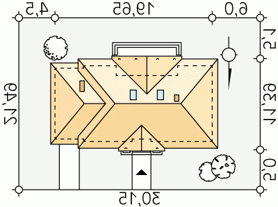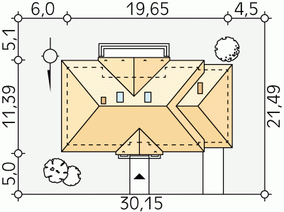 Ściany: bal drewniany + wełna mineralna, Stropy: POROTHERM, Dach: dachówka, kąt nachylenia 30° i 35°