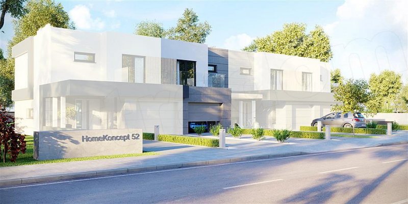 HomeKONCEPT 52 S to projekt domu w zabudowie szeregowej, wyposażony w instalację solarną do podgrzewania wody użytkowej.