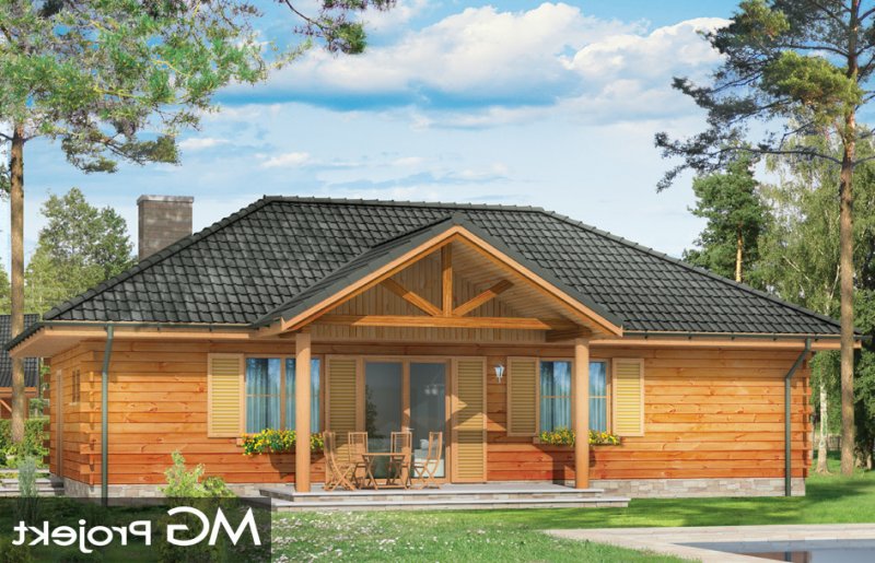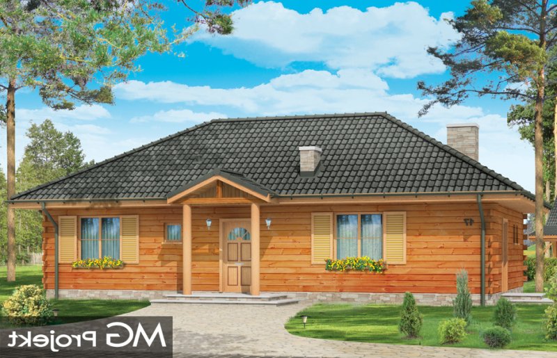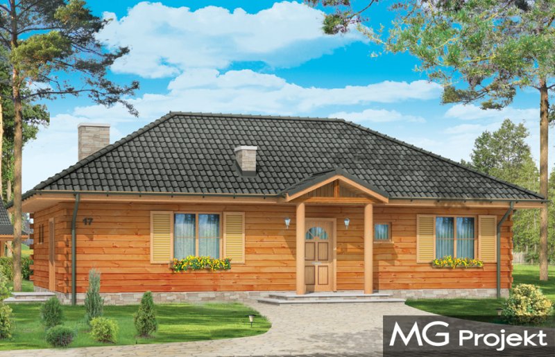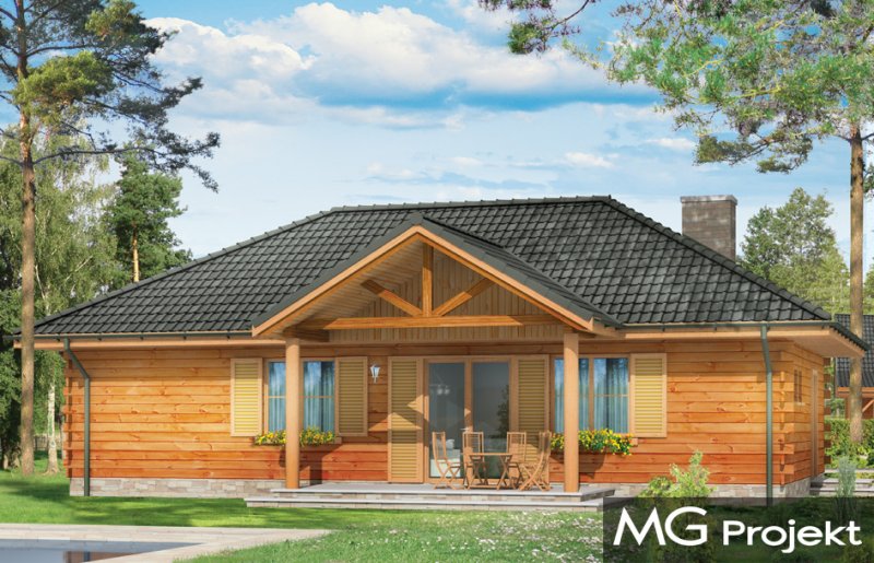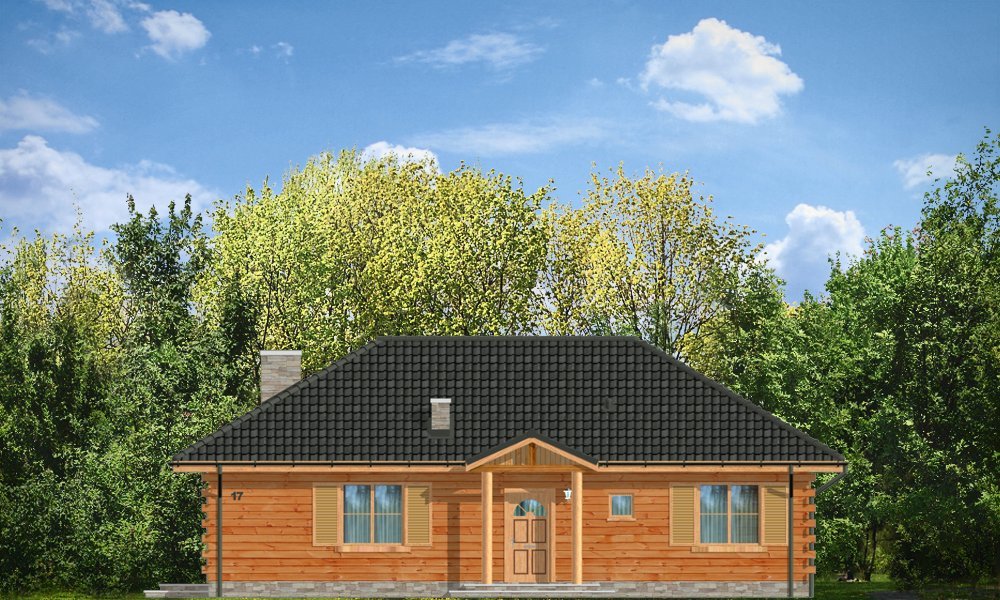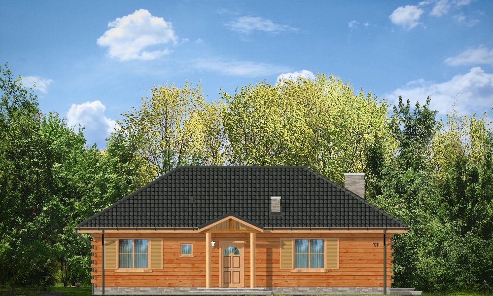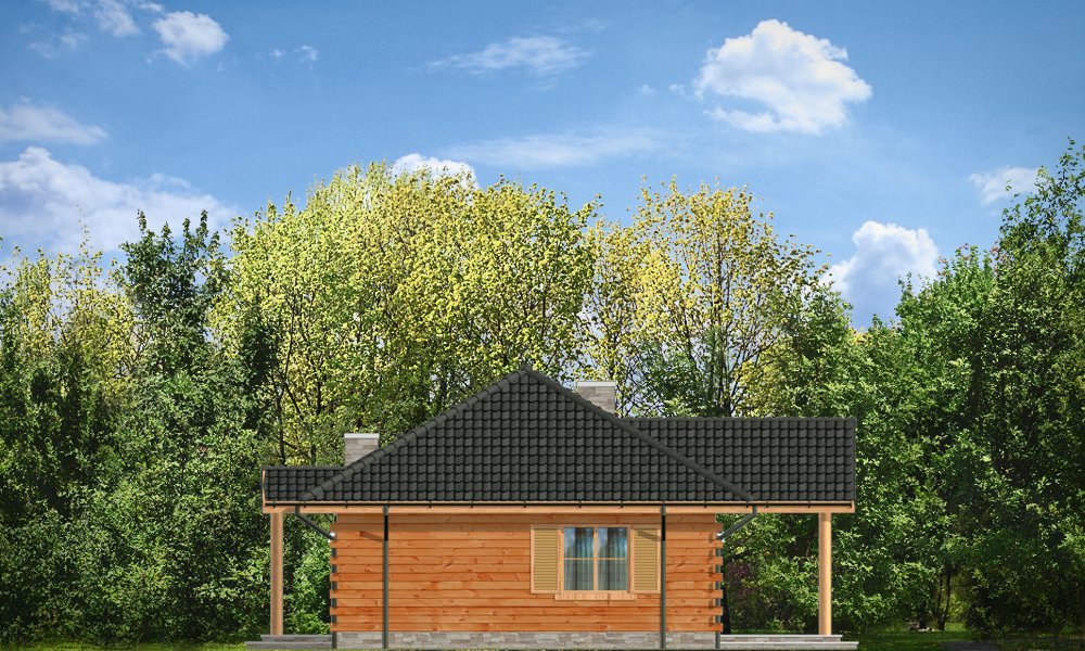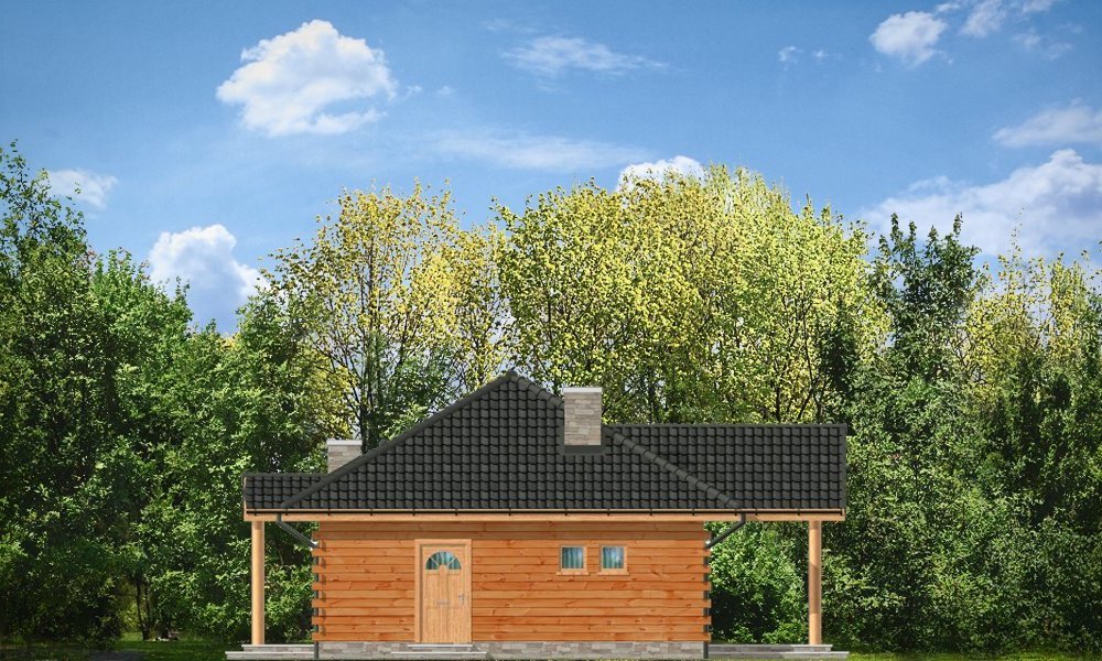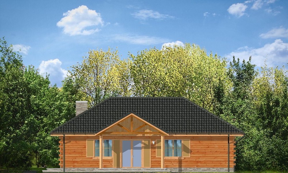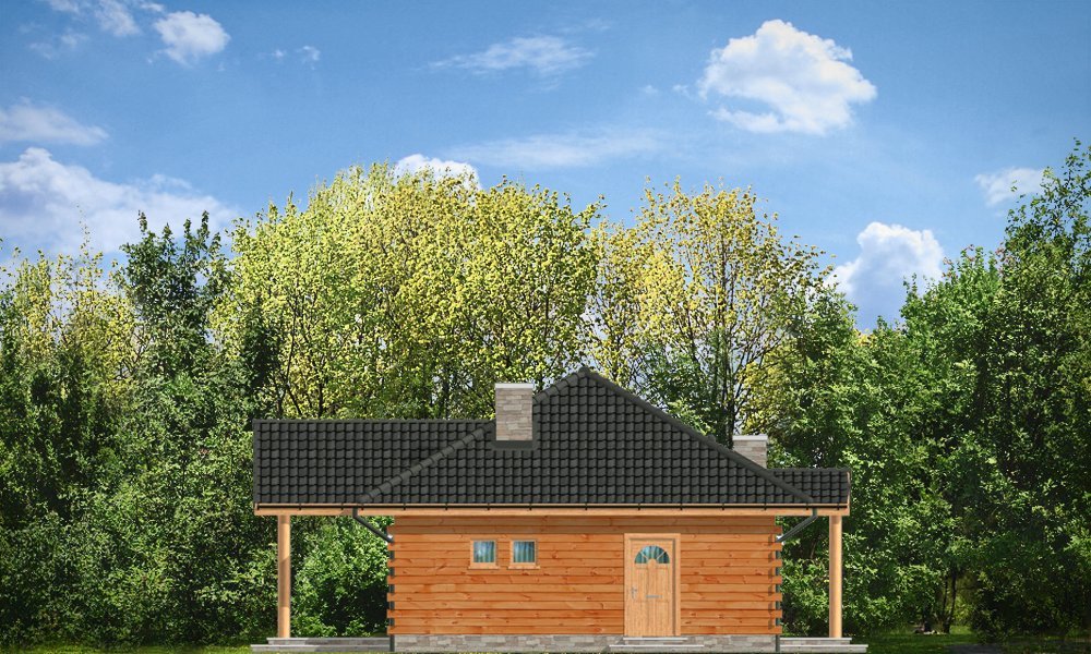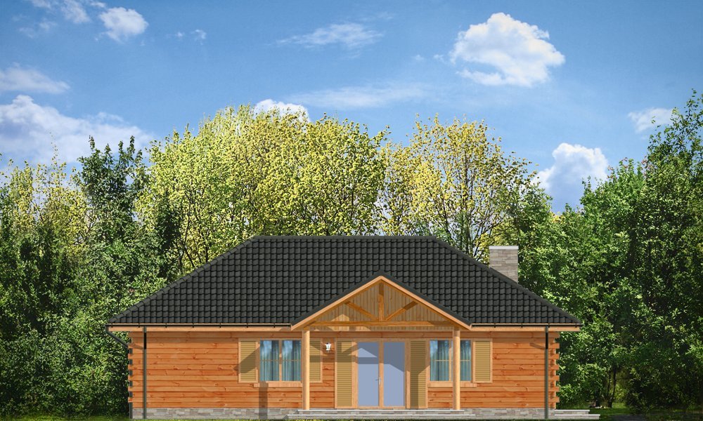 Jaskółka to idealna propozycja zarówno na dom letni, jak i całoroczny. Projekt z bala litego z wewnętrzną ocieploną wełną mineralną konstrukcją. Budynek zaprojektowany został z myślą o czteroosobowej rodzinie. Architektonicznie najlepiej wpasuje się w tereny podmiejskie i wiejskie. Dość prosta bryła przekryta czterospadowym dachem urozmaicona została malowniczym portykiem wejściowym i ogrodową zadaszoną werandą, na której właściciele mogą przesiadywać popołudniami - podziwiając swój ogród. Wnętrze domu to otwarta część dzienna z przestronną kuchnią, oraz część nocna - bardziej prywatna, z sypialniami domowników. Z boku domu zaprojektowano duże pomieszczenie gospodarcze, przeznaczone na kotłownię. W projekcie opcjonalnie przewidziano podpiwniczenie pod pomieszczeniem gospodarczym. Dom, dzięki prostej formie i konstrukcji jest ekonomiczny w samej budowie jak i późniejszym utrzymaniu.