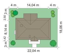 - Min. wymiary działki 22.04x18.06 m