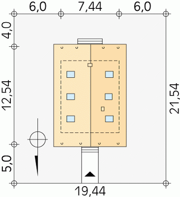 - Min. wymiary działki 19.44x21.74 m