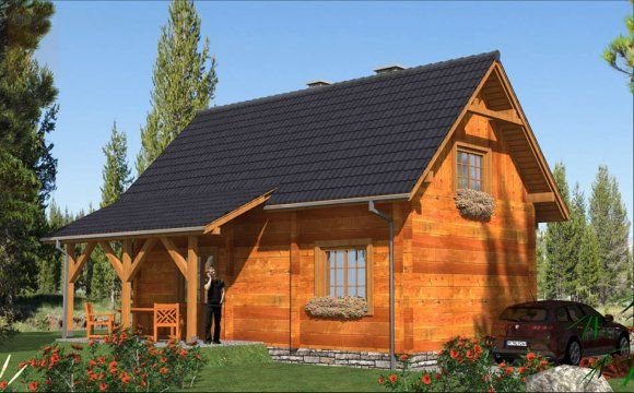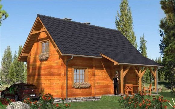 Ściany zewnętrzne: z bali drewnianych gr. 12, 16, 20, 24 cm. ocieplone od wewnątrz wełną mineralną lub 52 cm bez ocieplenia