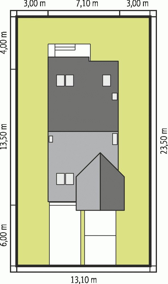 - Min. wymiary działki 13.10x23.50 m