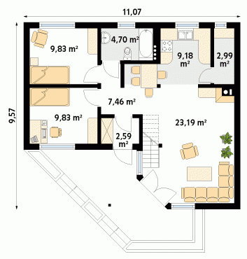 - Wysokość budynku 4.97 m