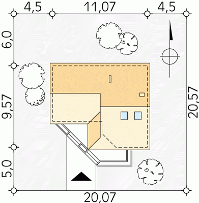 - Min. wymiary działki 20.57x20.07 m