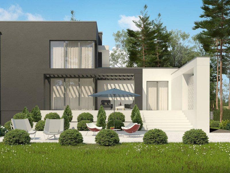 Góra może stanowić oddzielne mieszkanie, ponieważ na piętrze mieszczą się 3 pokoje, komfortowa garderoba i elegancka łazienka. Istnieje tam ewentualność zaadaptowania garderoby na kuchnię. Dobrego smaku i oryginalności przysporzy dodanie kominku na tarasie.