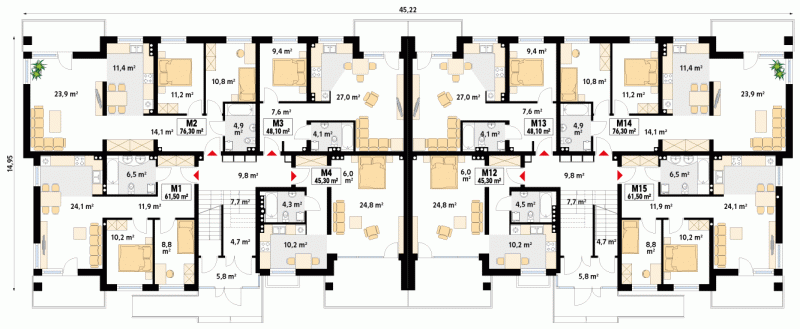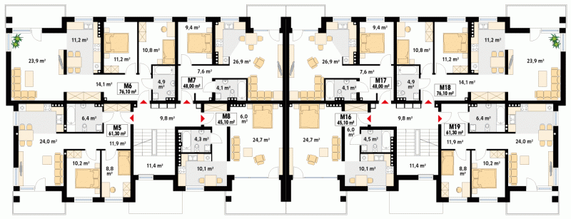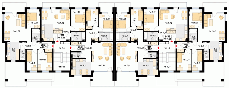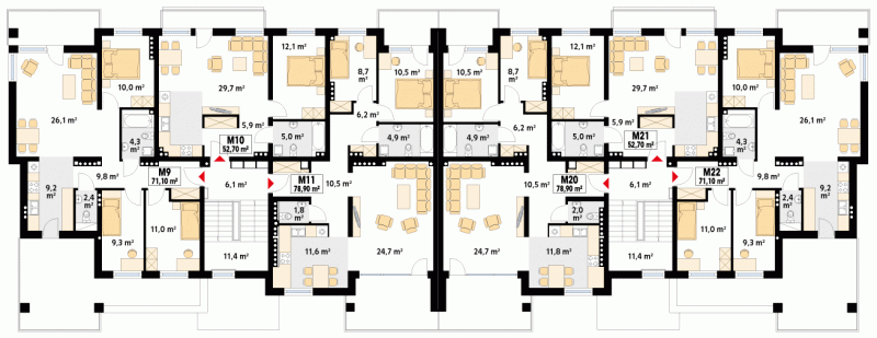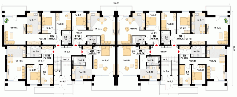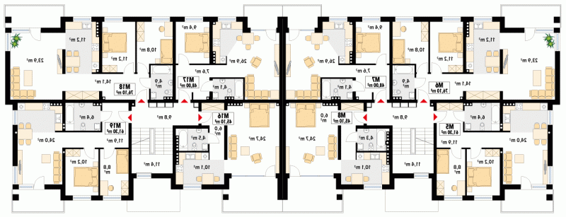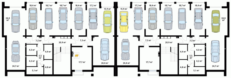 Dom wielorodzinny, podpiwniczony. 18 stanowisk garażowych w piwnicy. W budynku na trzech kondygnacjach zaprojektowano 22 mieszkania.