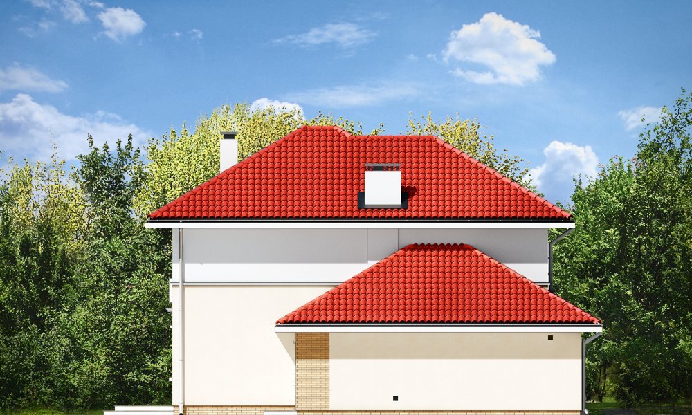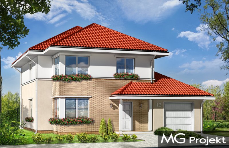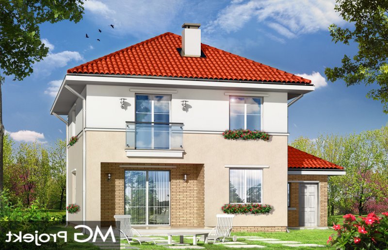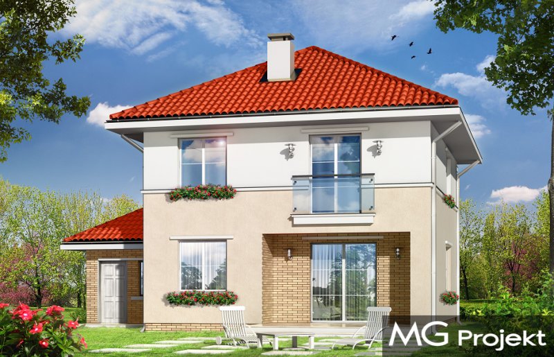 Ametyst to budynek jednorodzinny dla rodziny cztero-sześcioosobowej. Budynek piętrowy przykryty wielospadowym dachem. Zwarta, prosta w budowie bryła budynku z dobudowanym garażem, została urozmaicona okładziną klinkierową elewacji, oraz podcieniami - wejściowym i ogrodowym. W projekcie położyliśmy szczególny nacisk na czystość i prostotę formy budynku. Oszczędny detal dodaje domowi dyskretnej elegancji. Wnętrze domu również zaplanowano tak, aby podziały pomieszczeń były klarowne - bez zbędnych korytarzy, a same pokoje miały optymalny kształt. Na parterze zaprojektowano salon z jadalnią i holem, z częściowo otwartą kuchnią, oraz dodatkowy pokój - gabinet lub sypialnię gościnną. Na piętrze projektant umieścił trzy sypialnie z garderobami i wbudowanymi szafami, oraz dużą łazienkę. Istnieje możliwość wygospodarowania dodatkowego, czwartego pokoju na piętrze - likwidując garderobę. Dostępna jest także wersja odbicia lustrzanego projektu.