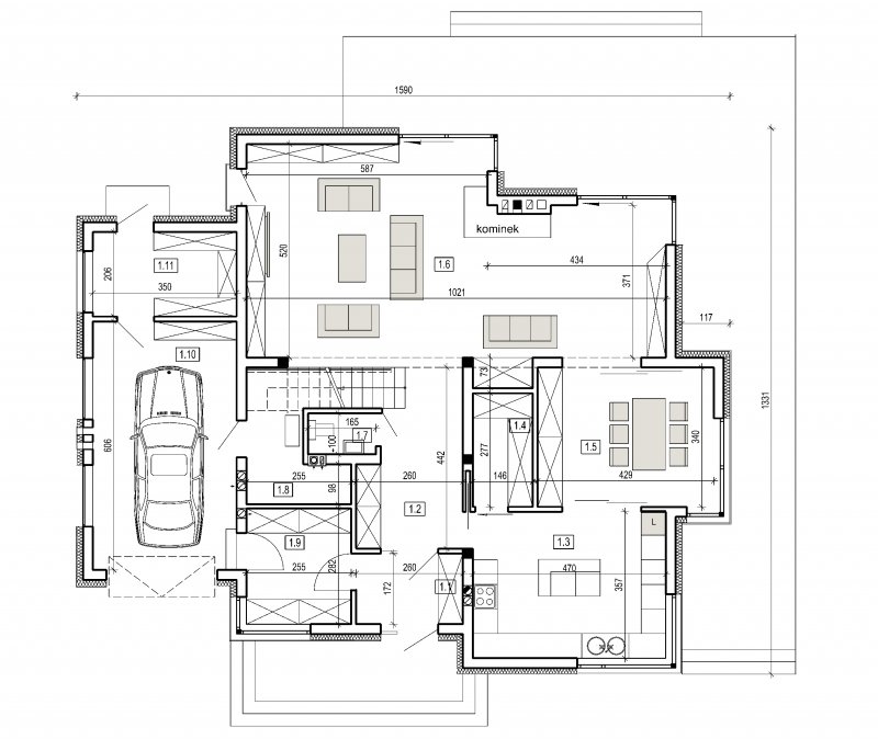 Projekt w tej wersji posiada instalację wentylacji z odzyskiem ciepła oraz zmodyfikowane grubości izolacji fundamentów, podłóg, ścian, stropów i dachu.