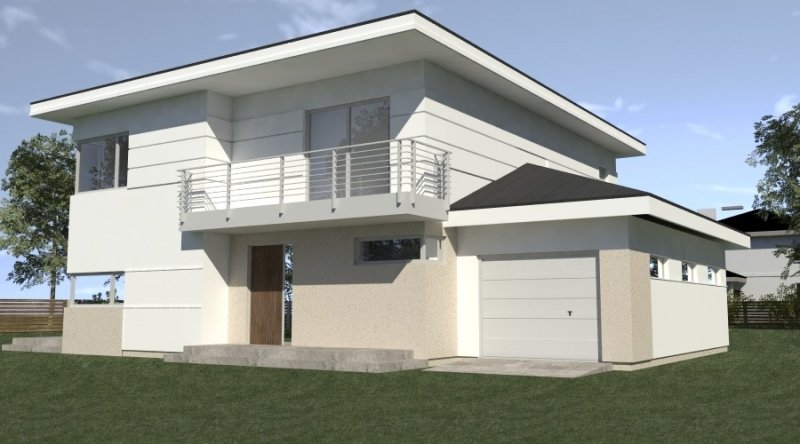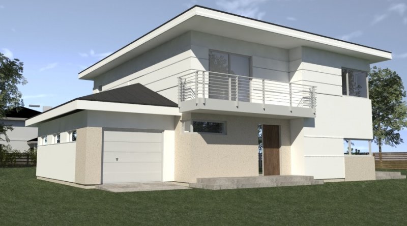 Otwarta kuchnia z wyspą, obszerna jadalnia oraz duży salon o powierzchni 47 m2 tworzą na parterze wspólną przestrzeń. Na piętrze znajdują się dwie duże sypialnie z własnymi garderobami oraz jedna większa sypialnia z podwójną garderobą i dostępem do prywatnego pokoju kąpielowego. Łazienka główna posiada wydzieloną przestrzeń na pralnie. Dom posiada garaż na jeden samochód osobowy.